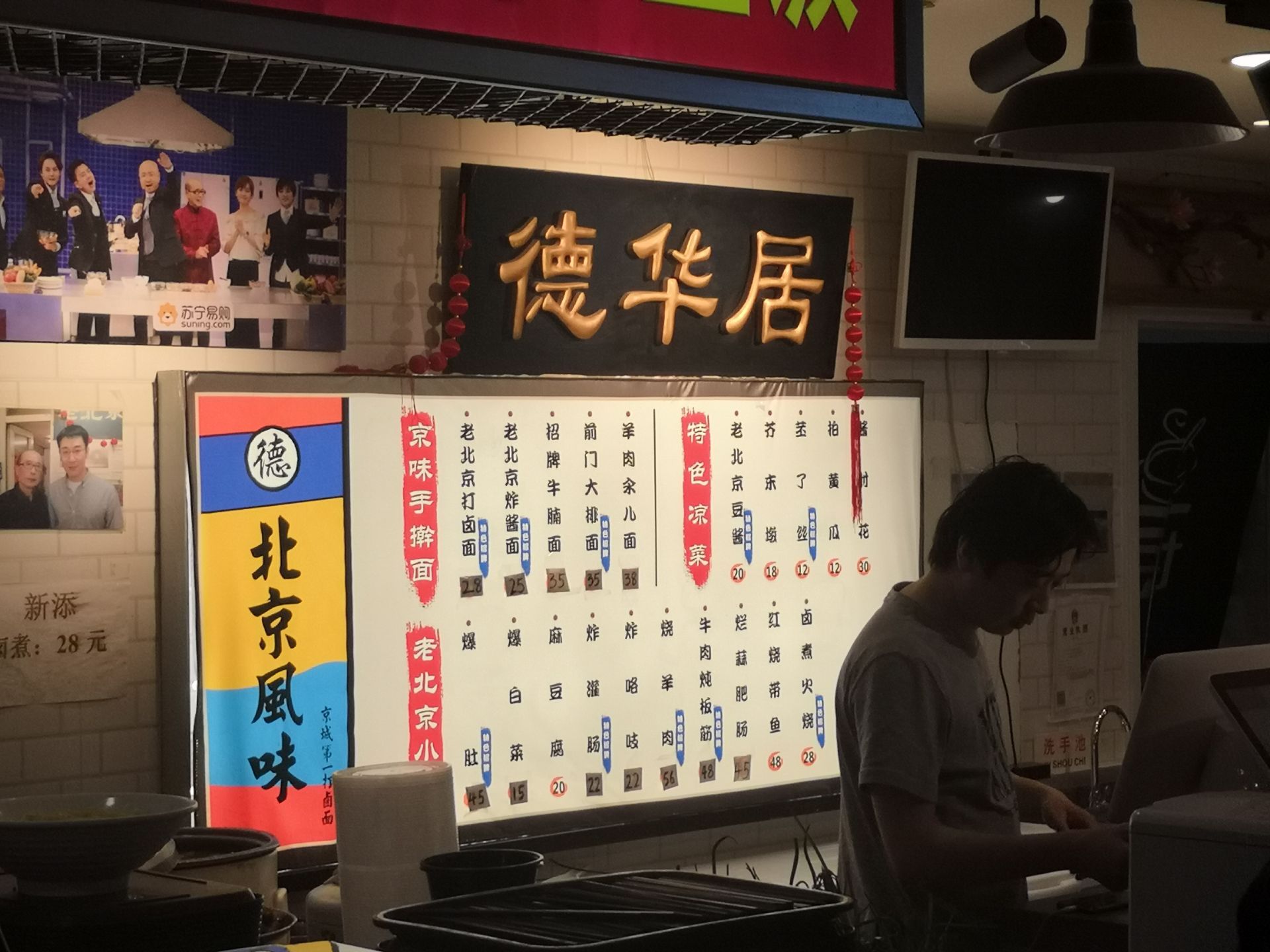 德华居小吃在西苑美食城的一楼,就是大排档的一个档口,有个招牌。主要积极老北京小吃。味道比较正宗,烧羊肉好吃,外焦里嫩很香。打卤面的卤汁不够浓。总体感觉菜量不是很足,小吃的特色感比较强,能虎虎外地人,哈哈