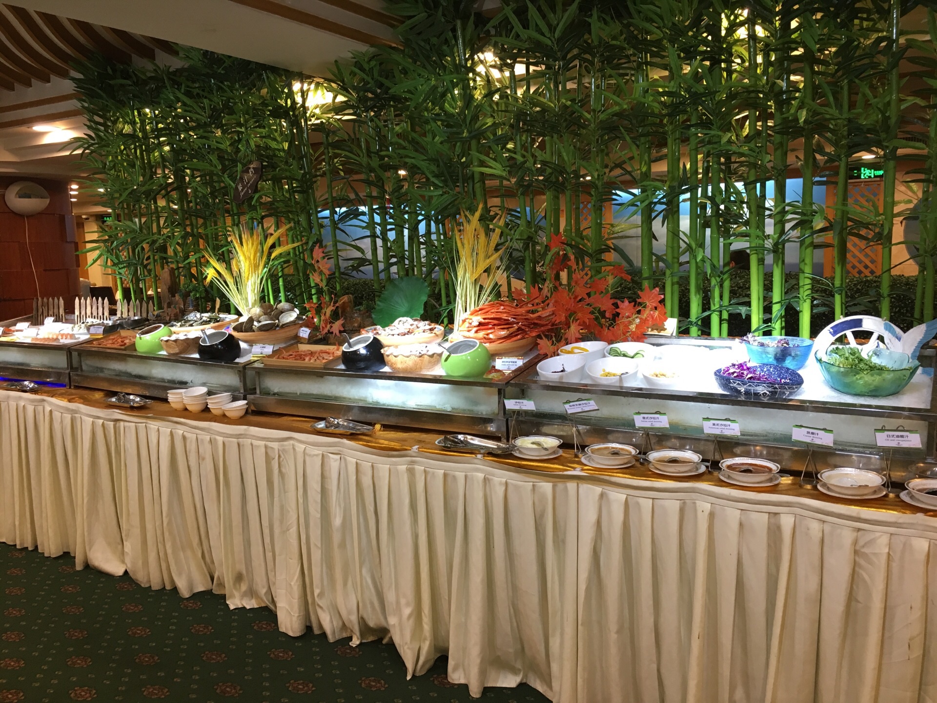 到通城开会顺便吃个自助晚餐,去的早,没几个人,餐厅看起来不错,不是很大,有北京烤鸭,自助火锅等等,我们拿了些肉串,扇贝,娃娃菜,糕点,没有红薯之类,虽然我们去的早,菜大都是冷的,味道自然打了折扣。三文鱼个金枪鱼不是很新鲜,生蚝烤老了,每次还只能拿两个,总的来说,比起其他五星级酒店的自助餐,还是差一些,当然价格也便宜些。