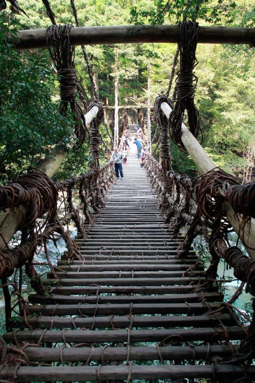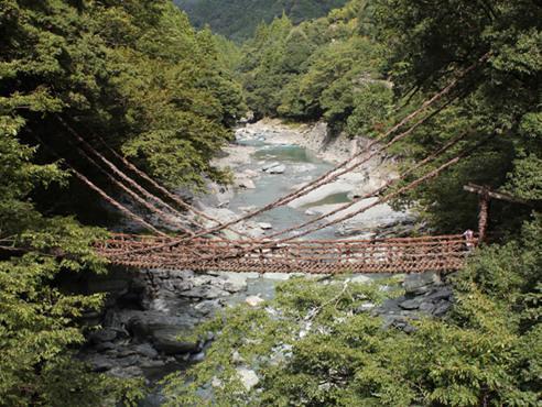 踏上去就会吱嘎吱嘎摇晃的吊桥充满惊险和刺激作为日本三大奇桥之一广为人知的“祖谷葛藤桥”由5吨重的葛藤建造而成,每3年重建一次。踏上去就会吱嘎吱嘎摇晃的吊桥充满惊险和刺激。(长45米、宽2米、距离水面14米、国指定重要有形民俗文化财)