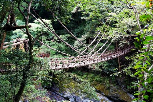 网友2019-04-17踏上去就会吱嘎吱嘎摇晃的吊桥充满惊险和刺激作为日本三大奇桥之一广为人知的“祖谷葛藤桥”由5吨重的葛藤建造而成,每3年重建一次。踏上去就会吱嘎吱嘎摇晃的吊桥充满惊险和刺激。(长45米、宽2米、距离水面14米、国指定重要有形民俗文化财)