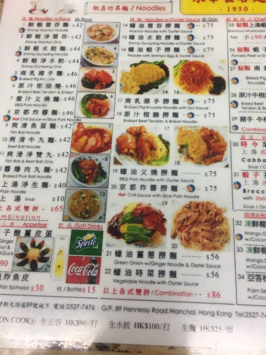 米其林推荐餐厅,价格便宜。店铺不大,味道还不错米其林推荐餐厅,价格便宜。 云吞面 42港币,是竹升面,汤鲜美,面有点偏硬了,这个是这家必点的。南乳猪手面 46港币,猪手很糯。热桑寄生茶 25港币。店铺不大,味道还不错。