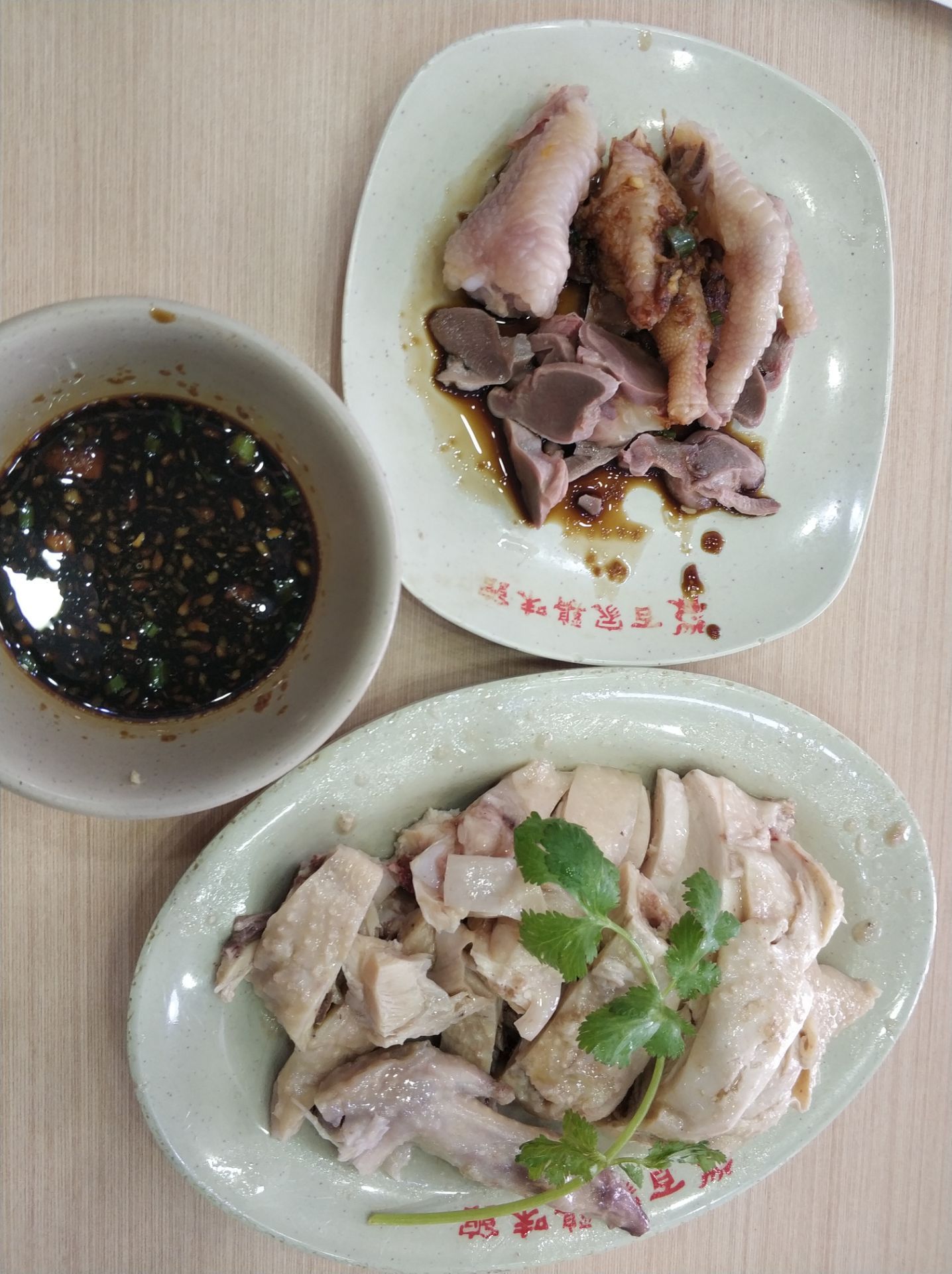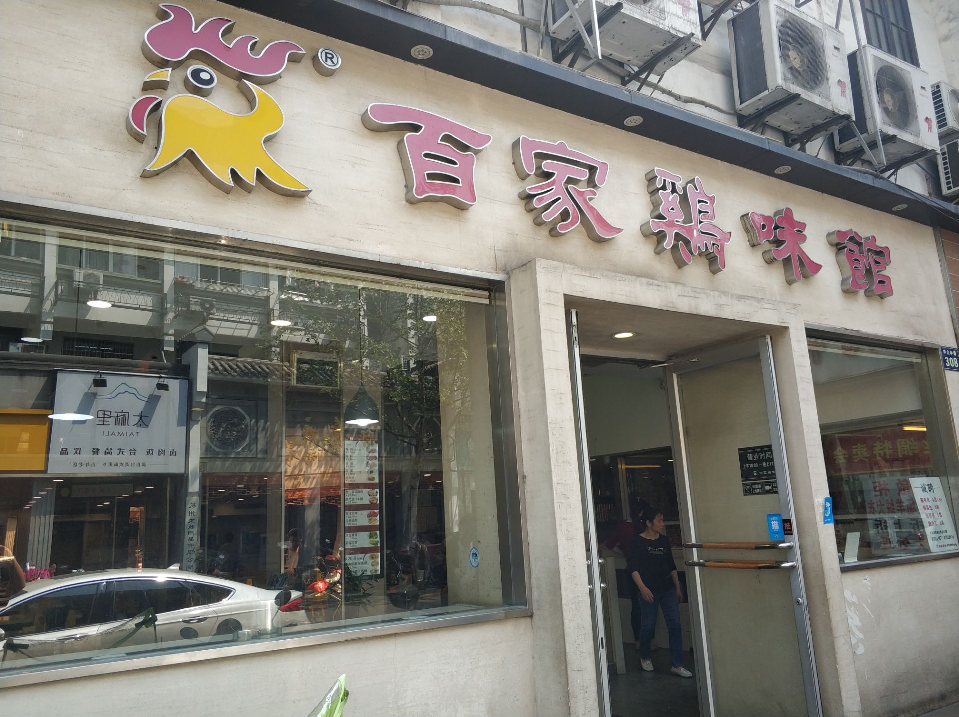 杭州去的次数比较多,又住在同一地区,所以吃什么总是很纠结。继续搜附近,百家鸡味馆评价不错,好像也适合一个人吃,走起。 店铺挺大的,普通快餐店的样子,干净整洁。 以白斩鸡为主的一家店,价格很实惠。单点了一份血汤,没想到拌面也有鸡杂汤送,味道都不错。 5星给超高的性价比。