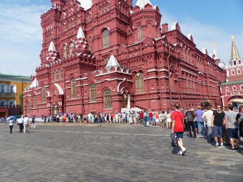 网友2019-04-17列宁墓位于红场西面,外观是阶梯状的3个立方体列宁墓位于红场西面,外观是阶梯状的3个立方体。墓前的碑石刻有“列宁”字样。陵墓一半在地下,一半露出地面,采用钢筋混凝土的框架结构,由黑、红两色大理石和花岗石建成。