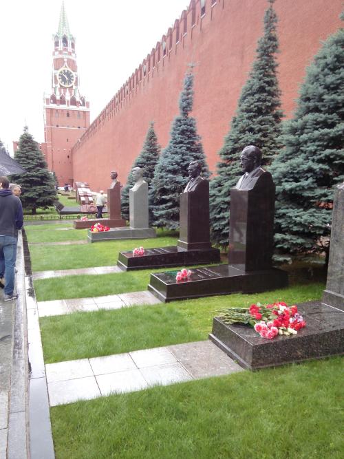 列宁墓位于红场西面,外观是阶梯状的3个立方体列宁墓位于红场西面,外观是阶梯状的3个立方体。墓前的碑石刻有“列宁”字样。陵墓一半在地下,一半露出地面,采用钢筋混凝土的框架结构,由黑、红两色大理石和花岗石建成。