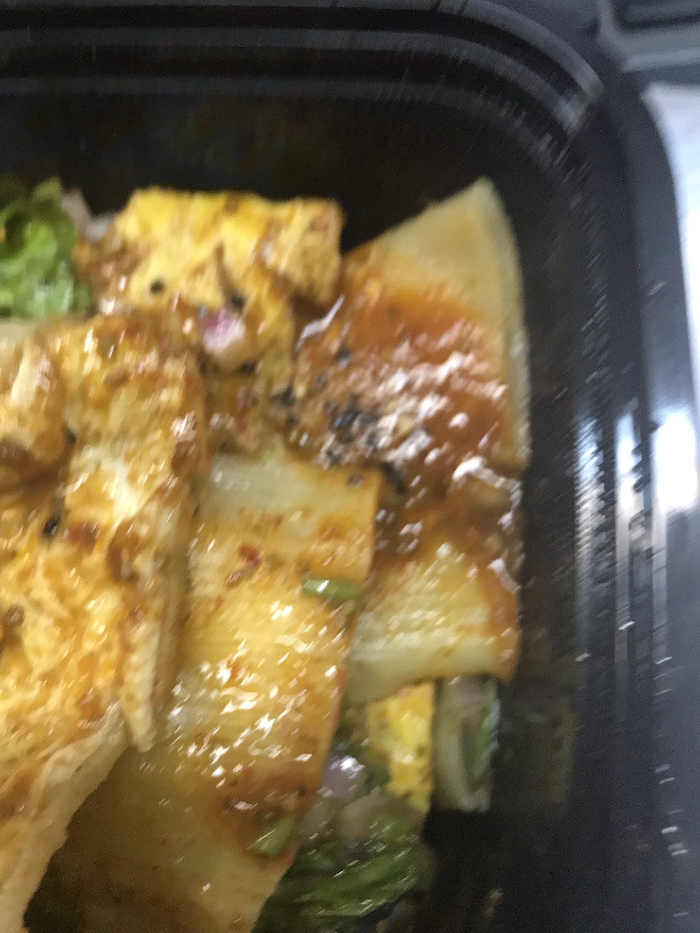 ...是很快的,餐品送达后我还放了20分钟依然是热的,味道吃下来像鸡蛋灌饼+辣条的结合体,口感不错哦