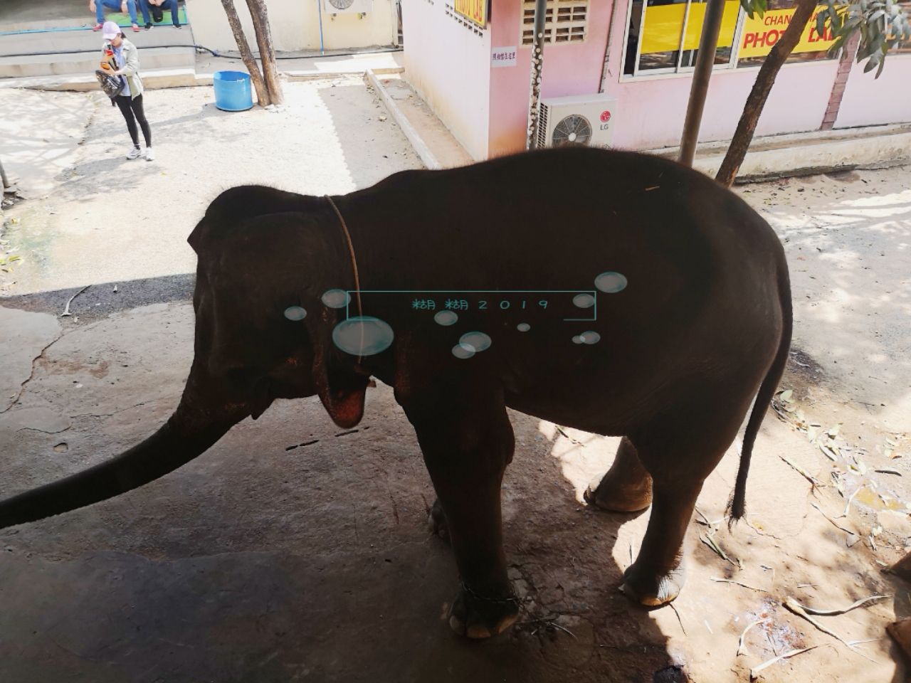 我们要走到高一层才能坐到大象背上,边上的小象有时候会把长鼻子甩到楼上来,可爱极了