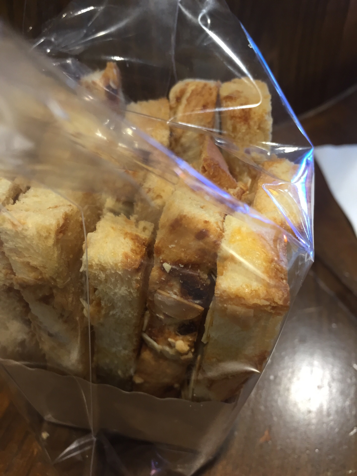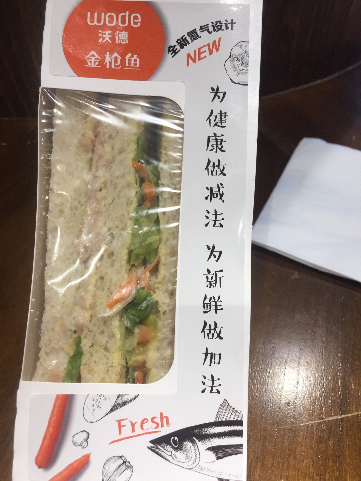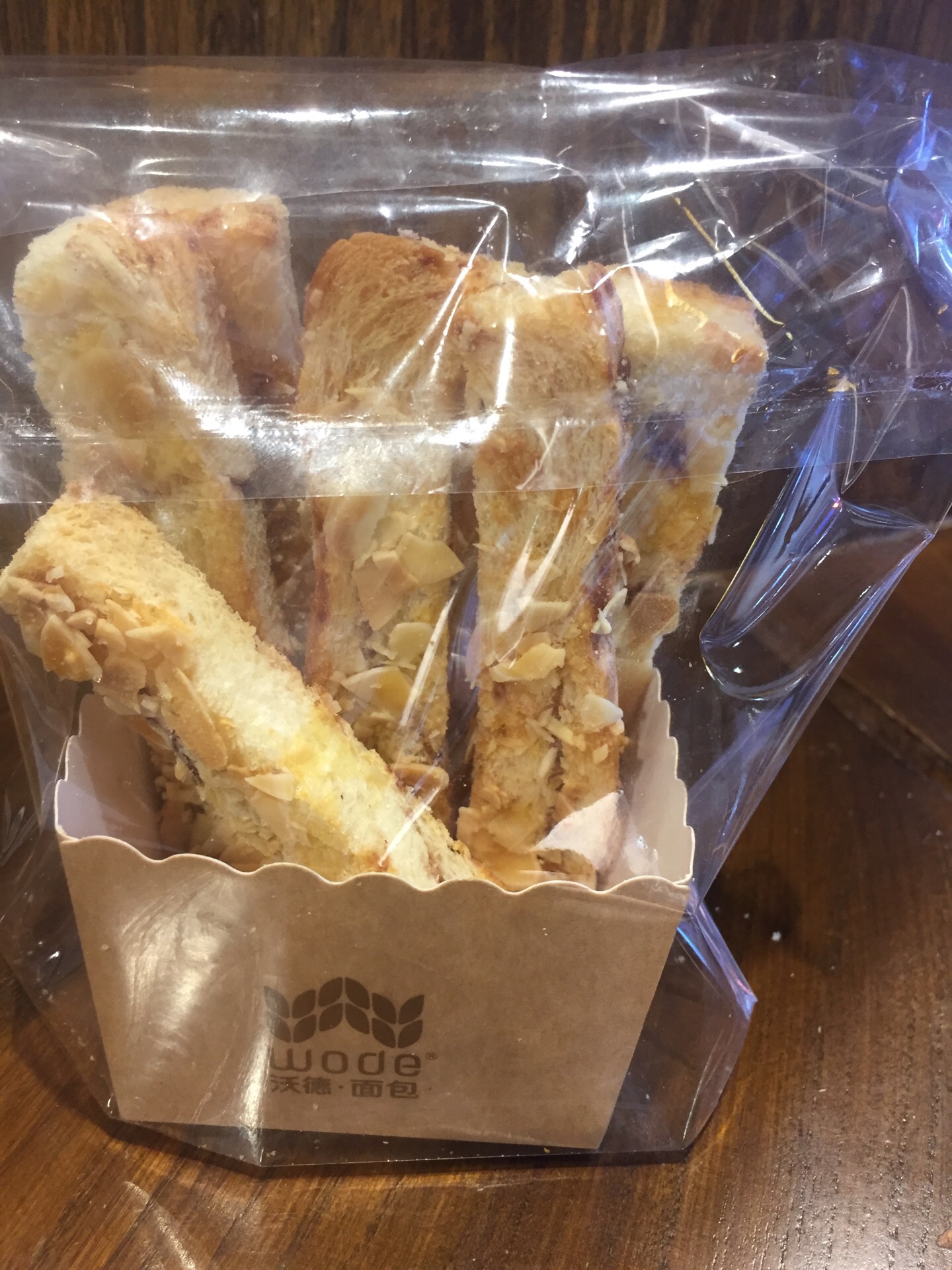 1)店面位置:八佰伴店位于南泉北路靠近商城里苏宁易购一楼外侧旁边。 2)店面特色:法国天然的红酒酵母技术与烘焙酵术结合,专注于做天然面包。水碱面包、面包圈和大列巴相对比较受欢迎。 面包个头都比较大,韧性十足,比较有嚼劲,用料也比较天然健康,含坚果谷物也比较多,很容易有腹饱感。买单后可要求店员帮忙分割切片便于快捷食用。 3)店面环境:黑底白字的法式乡村自然系的装修风格,暖黄色的灯光下的干净透明的大玻璃橱窗里陈列着硬欧包、软欧包、吐司和甜点等各类品种面包。 有蛋糕冷藏柜、吐司面包区、用餐区和面包展示售卖区等的隔断。 店里有堂食区,户外有露天座位,室内有几个木制桌椅和高脚吧台桌椅,可以吃点面包小憩片刻。 4)用餐体验:点单后,服务生出单和打包速度较快。 22元一个的全麦金枪鱼三明治是已经做好的现成品,从冷藏柜里拿出的。面包片能吃出麦香味,金枪鱼料稍微少些,味道中规中矩。 7元一袋的咔咔脆类似面包干,口味自然,谷香浓郁,要起来确实有咔咔脆的声音。 18 元一大杯的霸气橙子是现做的,橙子切片比较多,橙子味比较自然,但为提鲜所添加的冷链果汁偏甜。 5)价格:相对85度C等高些,但胜在面包大多是现场新鲜烘培出炉,且口感自然。
