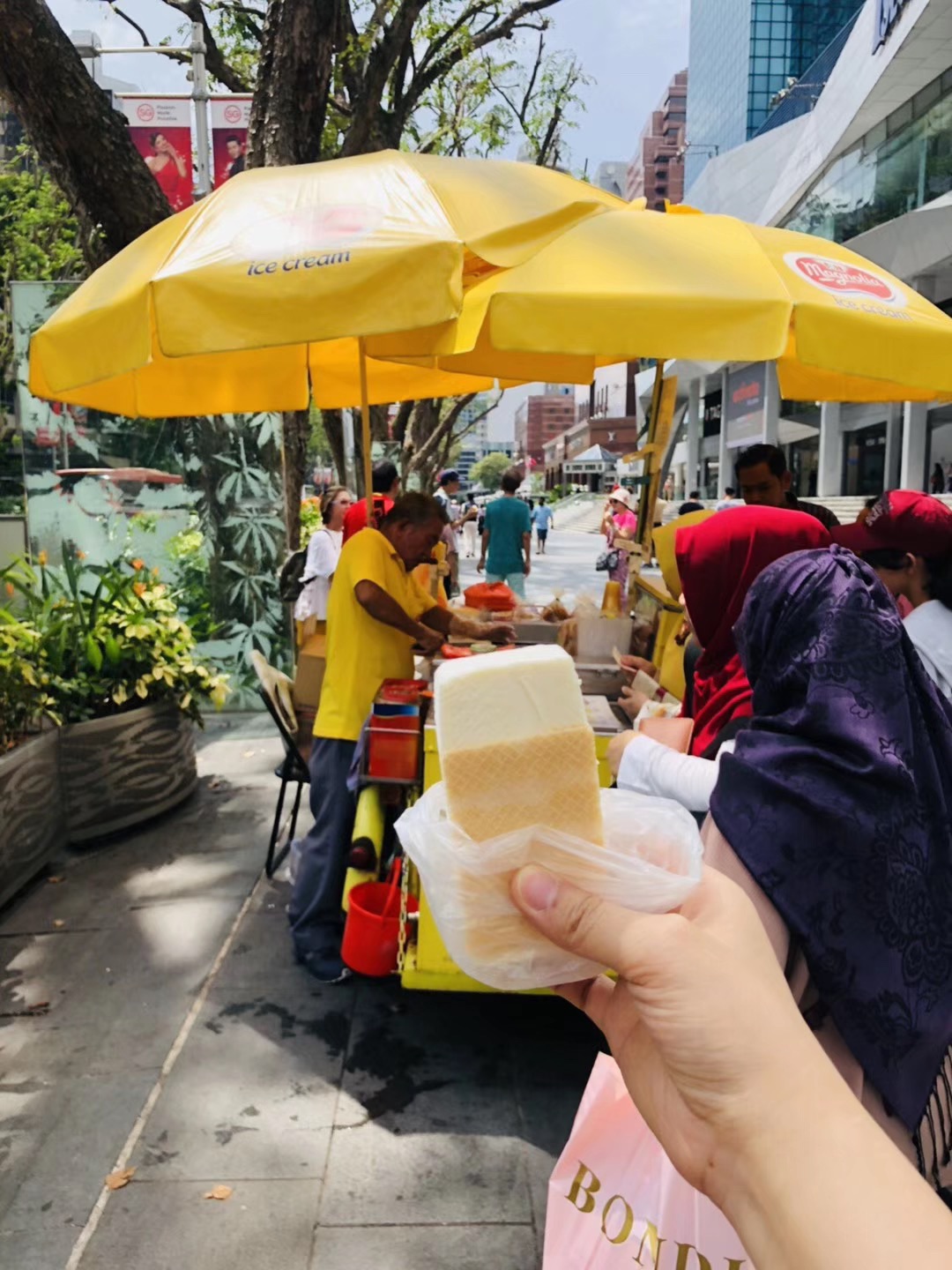 网友2019-04-18乌节路的这个三明治冰激凌摊绝对是网红啊 从十二道锋味后就成了网红,1.2新币,有各种口味 总有...乌节路的这个三明治冰激凌摊绝对是网红啊 从十二道锋味后就成了网红,1.2新币,有各种口味 总有一款适合你的!个人比较喜欢巧克力味和薄荷味 另外 还有榴莲味哦