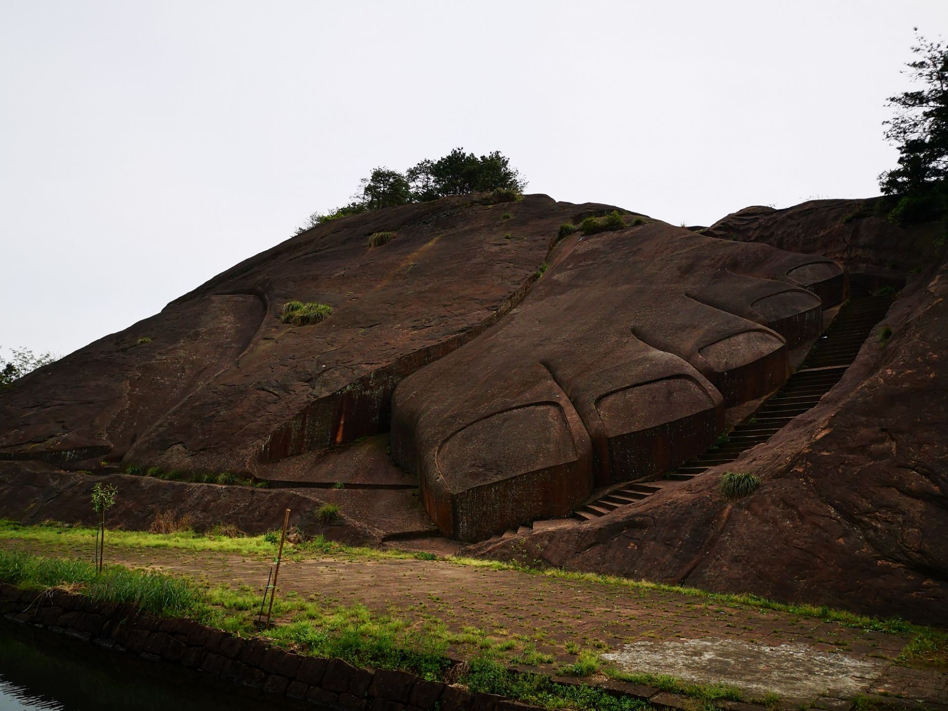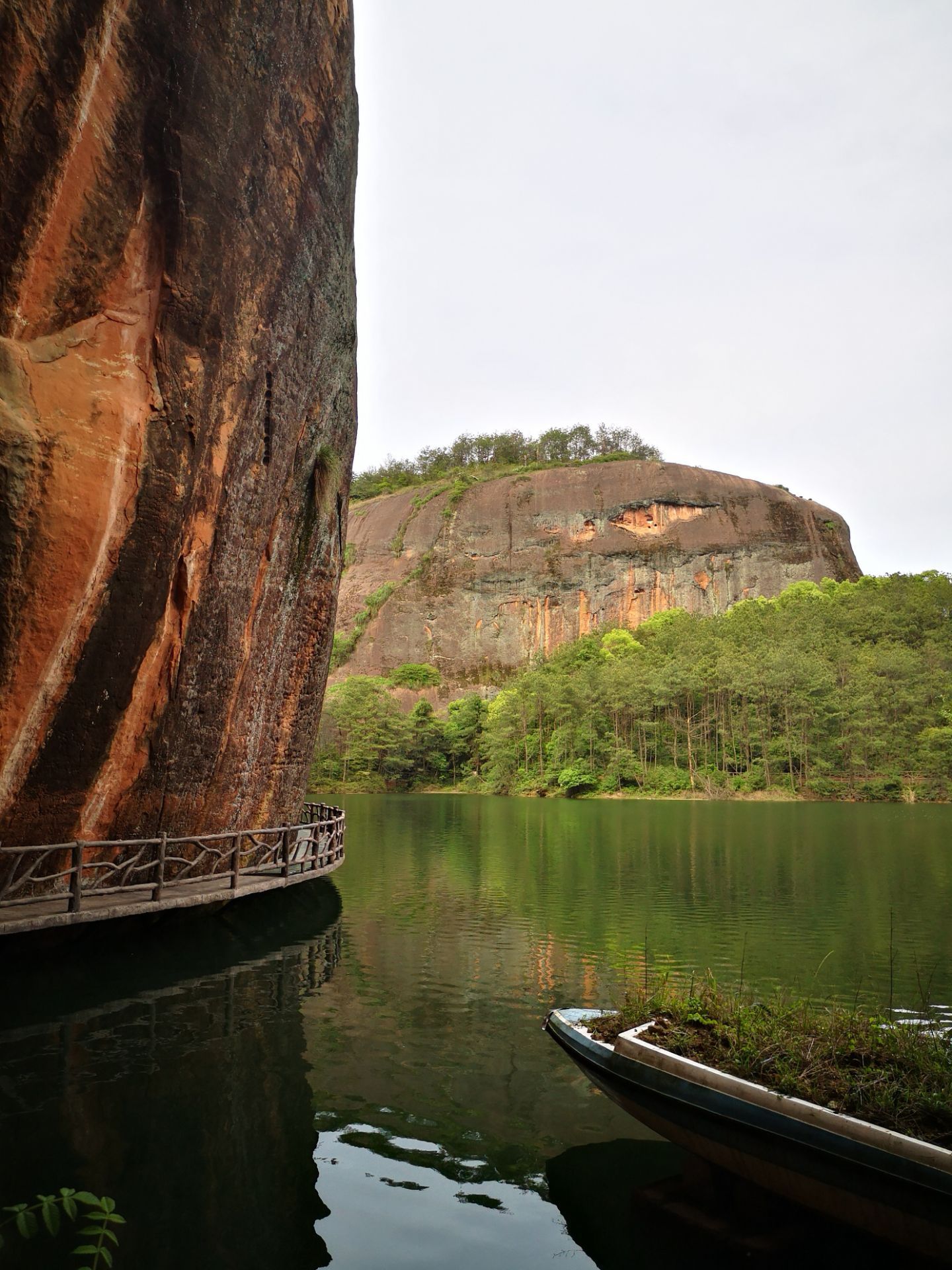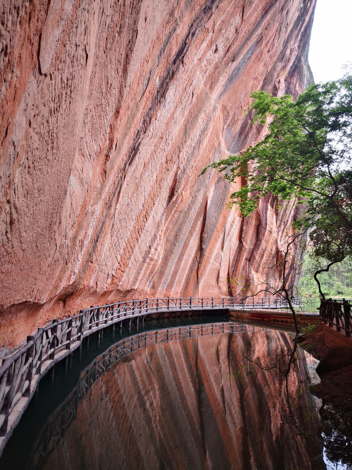 游玩龟峰,时间尚早,便决定去卧佛看看。之前也没有收索到有价值的信息,完全是随意的临时决定。好在一上K2路公交车,咨询的司机很清楚,卧佛景区专门有一站。下车右行没多少路便到了。景区大门相当简陋,也没有景区标识,有个矮小的小屋售票,票价60元,只给了发票,没有纸质门票。一问方知,这是私人老板投资的,目前还在建设中。难怪相关攻略极少。拾阶上了大坝,便是狭长水域,看到进口指示往左岸栈道,嘴巴懒了没多问,拔腿就走。一开始走在水边栈道上,欣赏清澈的水及两岸裸露的岩石没太分心,但走着走着越感不对劲,即没有指示路标,又不见人可询问,更别说大卧佛的尊容了。没办法只能往前走,虽然水面不宽,但无法到对岸。直到远远看到一个吊桥,虽说恐高,但别无选择,只能上。在上桥的入口有个旋转门。桥上无人,走起来晃荡不厉害,成功过桥。在出口的旋转门上有大字号提示,只能出不能进,这么说我是按照景区设计的走对了。过桥返程,有几处借助山洞盖的建筑,尚没有完工。路上遇到4、5 客人,确定大卧佛在回去的路上。经过这么久的不安,终于看到了大佛,确定壮观,多少安慰一下受惊的小心脏。回到大坝可以走山上的路,更近点,我还是沿水边走,路途比想像得远,或许是因为爬过龟峰后体力不支了的缘故。所以,如果仅为了看大卧佛,一定右手边走,会少走三分之二的路,当然等景区建设好,或许不让右行!
