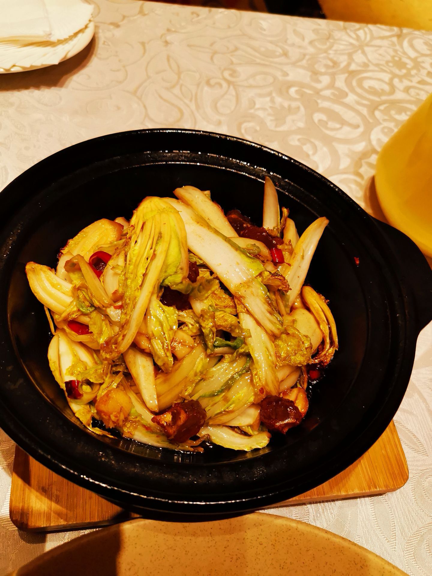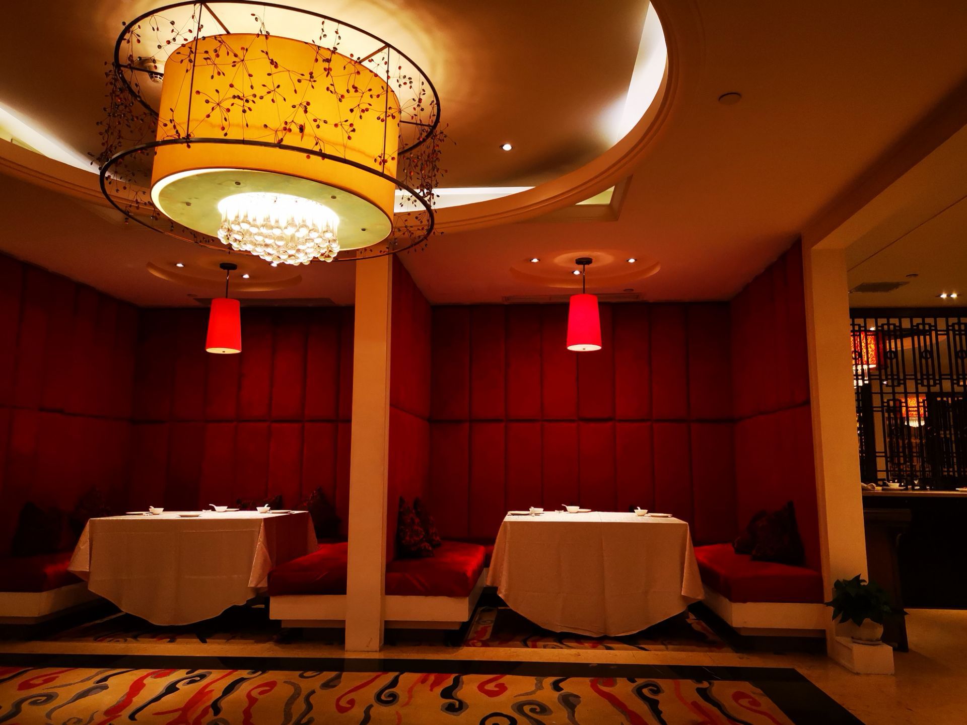 格兰维大酒店八楼的山城印象中餐厅,环境非常清幽,人少。菜品又重新进行了更换。黑鱼头干煎配上酸菜鱼调料以及手工擀制的米线,一起高汤煮,味道鲜香。小炒牛肉粒配上红辣椒,淋酒快炒有烟火气,很嫩,下酒下饭。这里的服务也非常好,选择有很多粤菜,海鲜也比较多,关键是新鲜。餐厅装潢也是一种喜庆的大红色为主。在解放碑这个位置,小范围聚餐,感觉还是很好的。