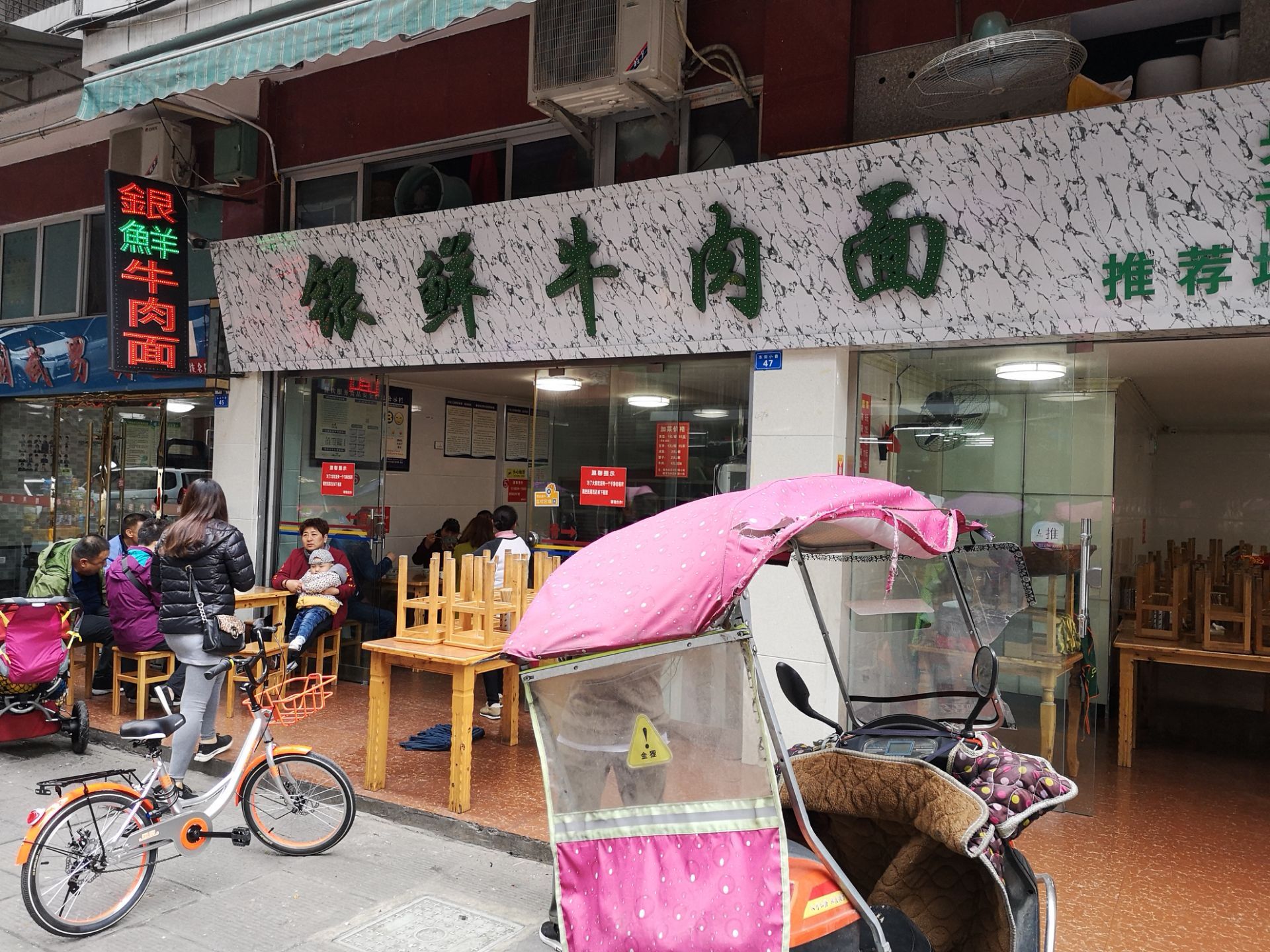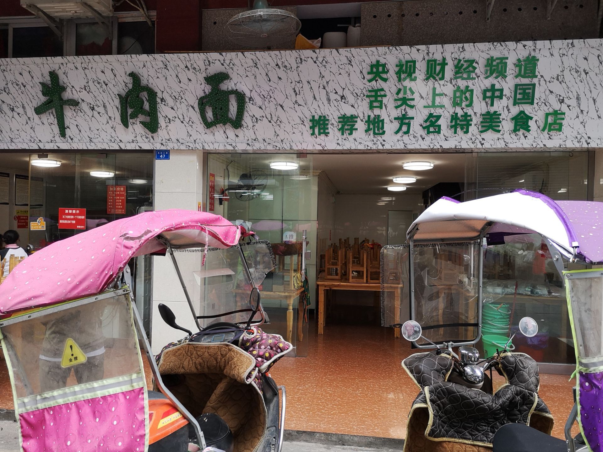 从广元一路南下来到阆中,由于早餐吃的比较饱,所以就想找一下阆中这边最有特色的小吃吃一下,这家店铺是在古城外面不远的地方,比起古城里面的店铺,这家店铺的装修还是比较现代化的,但是别看他平平无奇的装修,这边的特色面真的是很好吃。 阆中的牛肉面是曾经上过舌尖上的中国节目的,这边的做法就是有很浓郁的汤,其实也不能够说是浓郁啊,已经是近视于浆糊这样子的形式。 牛肉面还是挺划算的,也就是几块钱一碗,可以在下面自己加点东西,我就加了一份豆芽,一块钱,小份的牛肉面虽然份量不是特别大,不过,对于有点饱的我来说已经是足够,牛肉一般都有两三块。 面条不错,很入味,相当有特色。