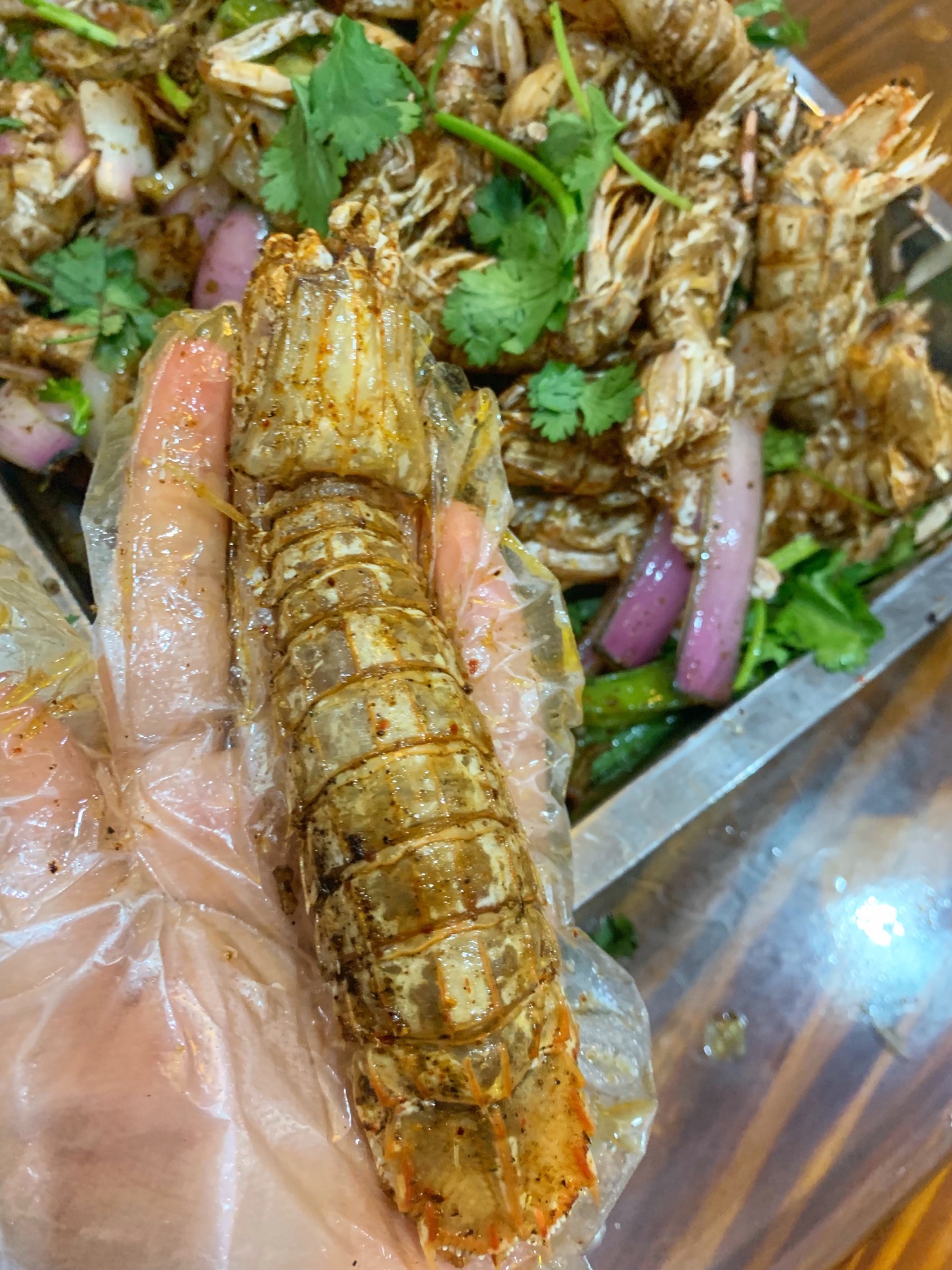 [环境]离地铁10号线相对近一些,走路还是需要点时间的,交通不算方便,公交车20:30就没有了,怎么会有这么多人排队的 店里布局紧凑,包房设备也一般般,洗手间也比较乱 [服务]阿姨挺热情,收盘子也挺情况,催菜也到位 「椒盐濑尿虾」80元一斤,5斤看上去还算丰富,里面的洋葱,香菜都很好吃,椒盐的入味了!个头有大有小,但是总体还可以,主要是个个都有黄,这个就不容易了,怪不得贵 「十三香小龙虾」「香辣小龙虾」「椒盐小龙虾」麻辣,蒜泥都各5斤的,辣度也可以说,也有重辣的,像我这种不吃辣的,椒盐和蒜泥的首选,但是蒜泥为什么也有点辣呢? 小龙虾品质比较一般,有些软了,不过比例不高,大部分还可以 「烤大带子」这个太一般了!肉老!看上去就不没啥食欲了「扇贝」也差不多,整体一般,还好没点多