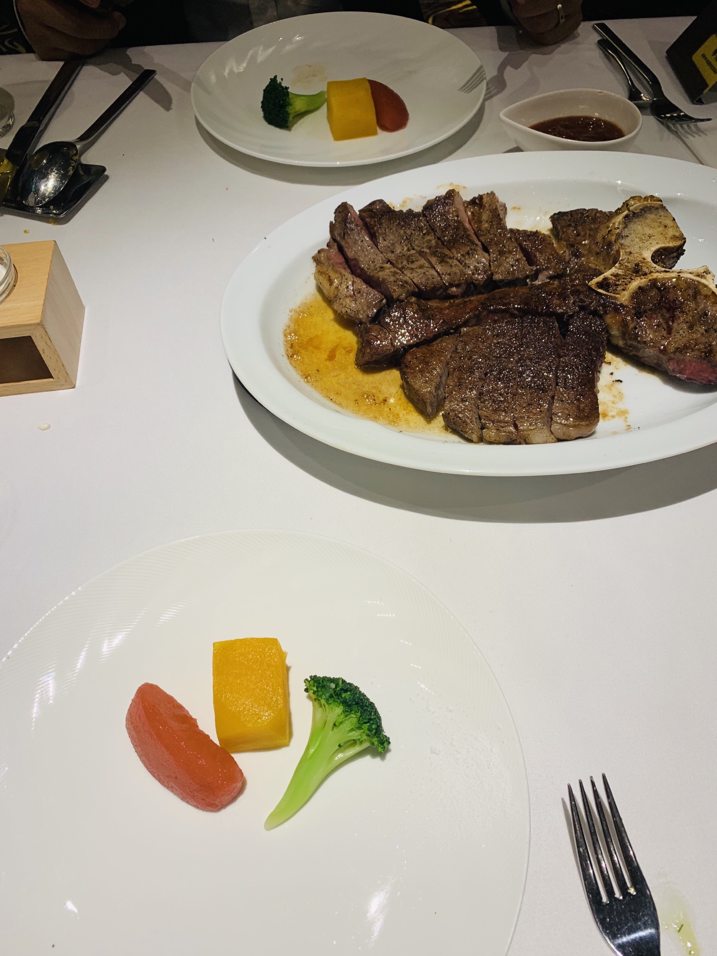 菜品比较少,不知道多久上一次新菜,嗯,还会去。双人套餐牛排超级大份服务很好,带宝宝去的,主动给宝宝椅餐具。双人套餐牛排超级大份! 甜的现场制作的,比较有仪式感,有点意思。 菜品比较少,不知道多久上一次新菜,嗯,还会去。