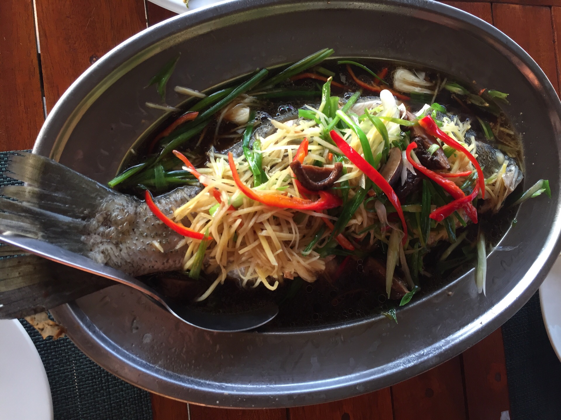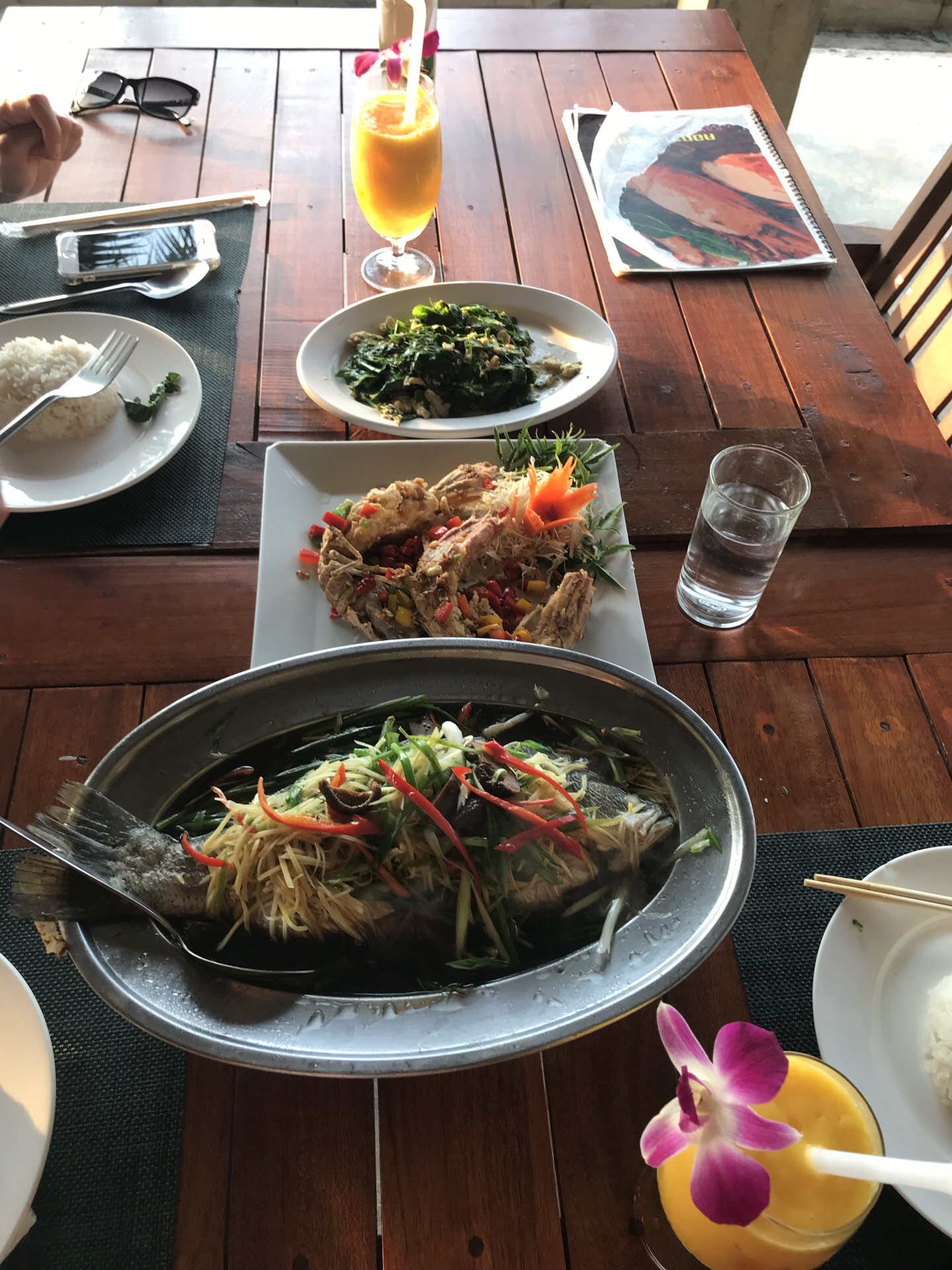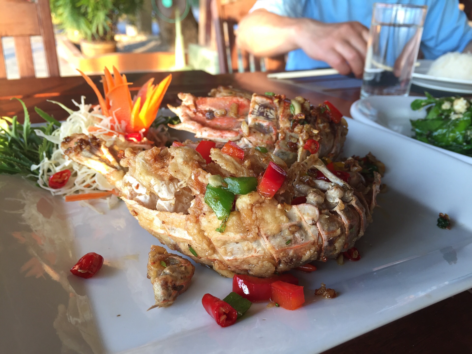 打一个电话就可以从周边酒店免费接送。海鲜都是老板亲自进的货。泰式咖喱蟹非常肥美,还有黄。野生皮皮虾比国内大几倍,根据你的口味烹调。住在兰塔三天,去了两次晚餐。每次光盘,太好吃了!色香味俱全,还可以看海景和落日。每桌都有蚊香,没被蚊子咬。关键价格和人民币很便宜啊!推荐。
