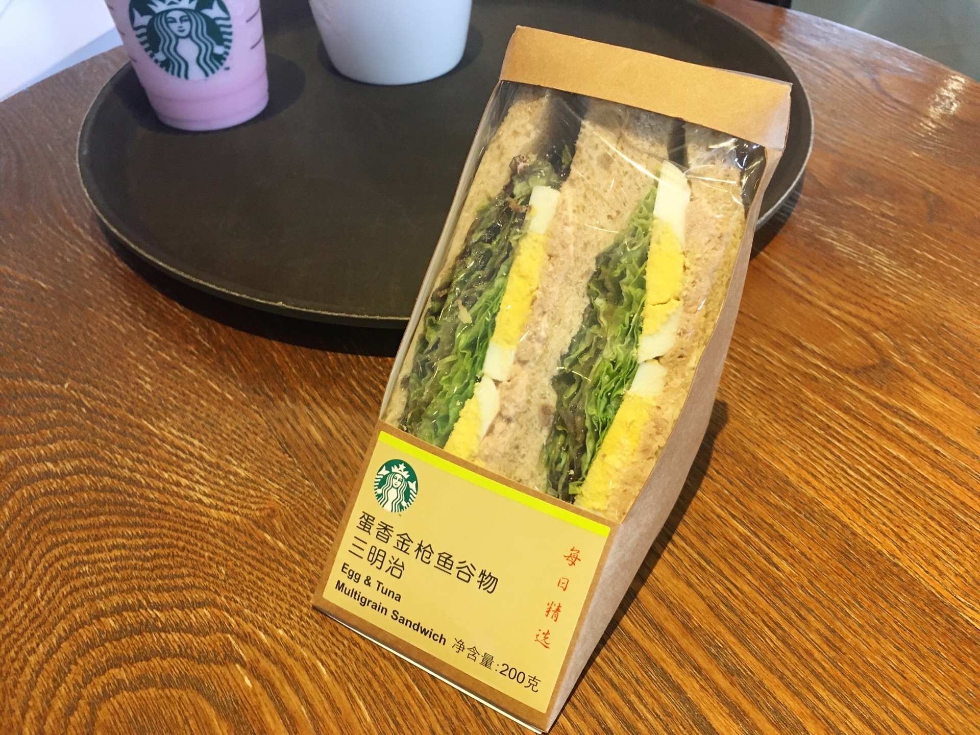 樱花玛奇朵星冰乐高颜值又美味,确实是需要半糖,有点甜;图3是什么鬼?上次点的樱花玛奇朵还高颜的样子,而且我反问咖啡大师为什么没有给我网格线的时候,她竟然说她加了,只是沉底了,喝了这么多年星巴克的玛奇朵系列,我第一次听说沉底,我朋友说她怎么不说飞走了呢?!!!最后经理过来解决了,而且就是酱没有了,她也根本没加!那点餐时怎么不说明?!;我最爱吃芝士金枪鱼卷,里面的彩椒很好看;蛋香金枪鱼谷物三明治是我的御用三明治。买这些,其实都是为了完成任务,终于得到了徽章。