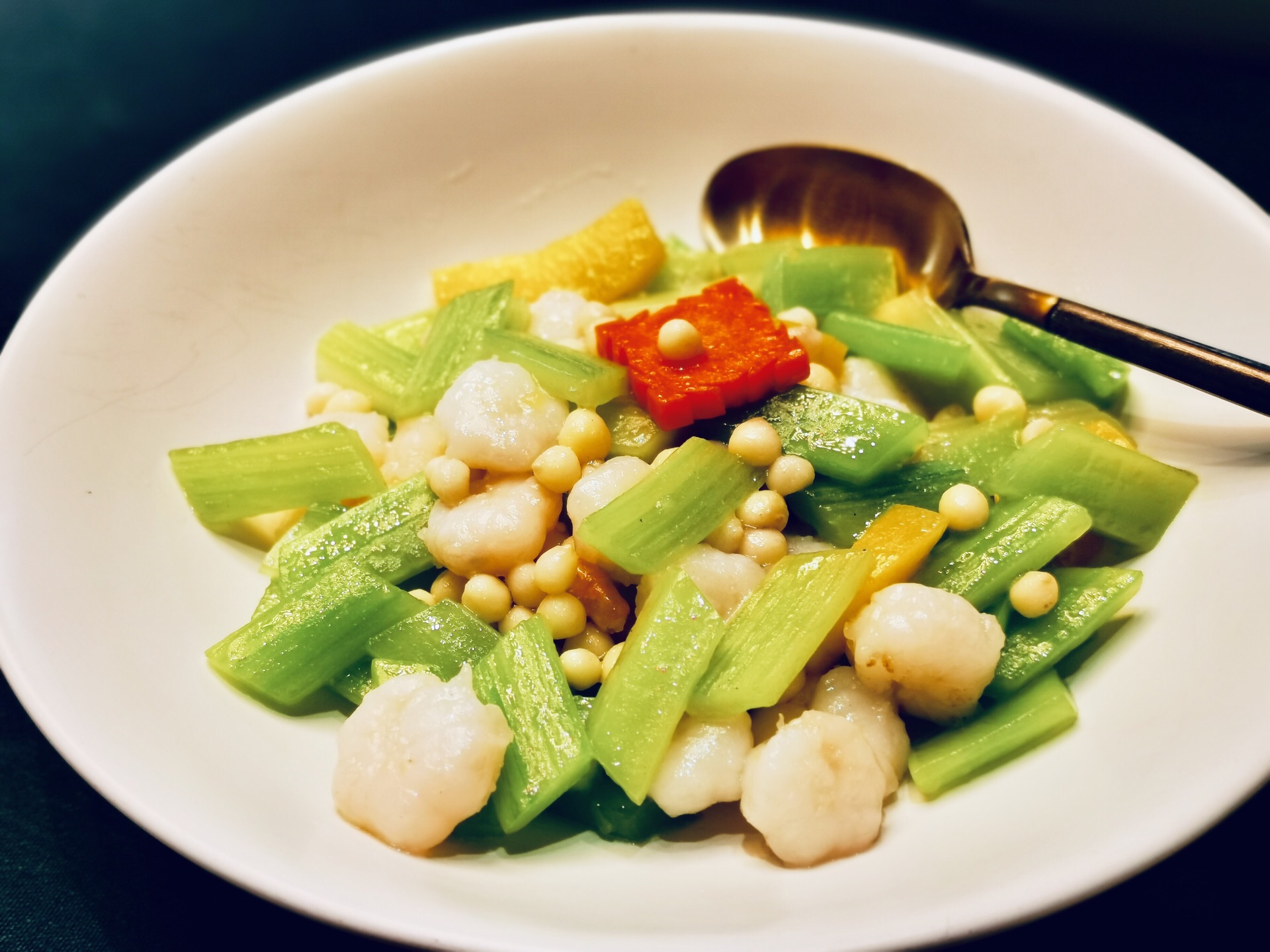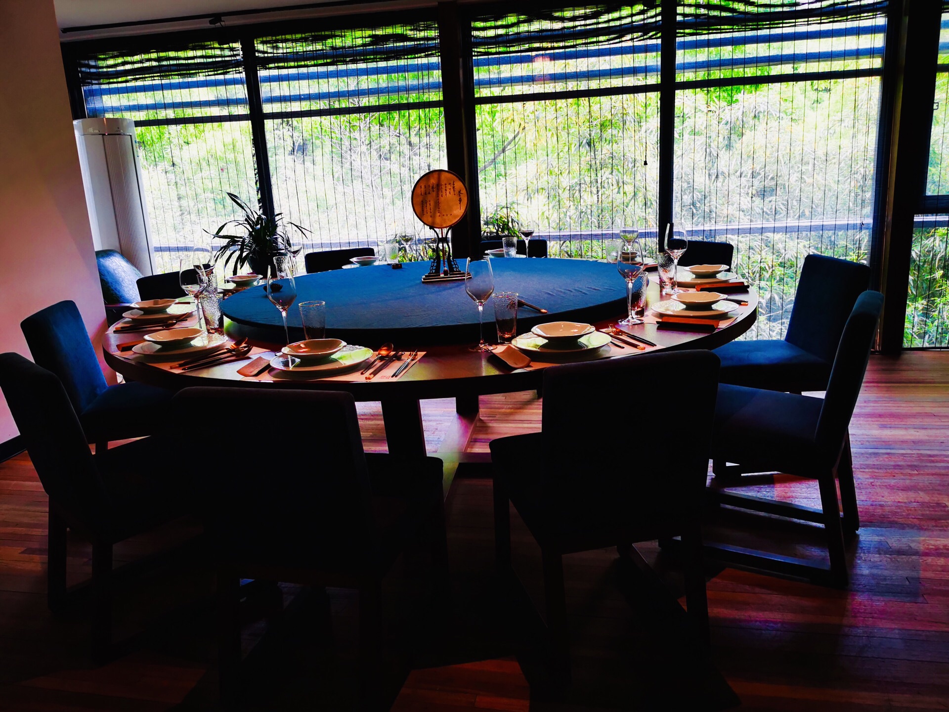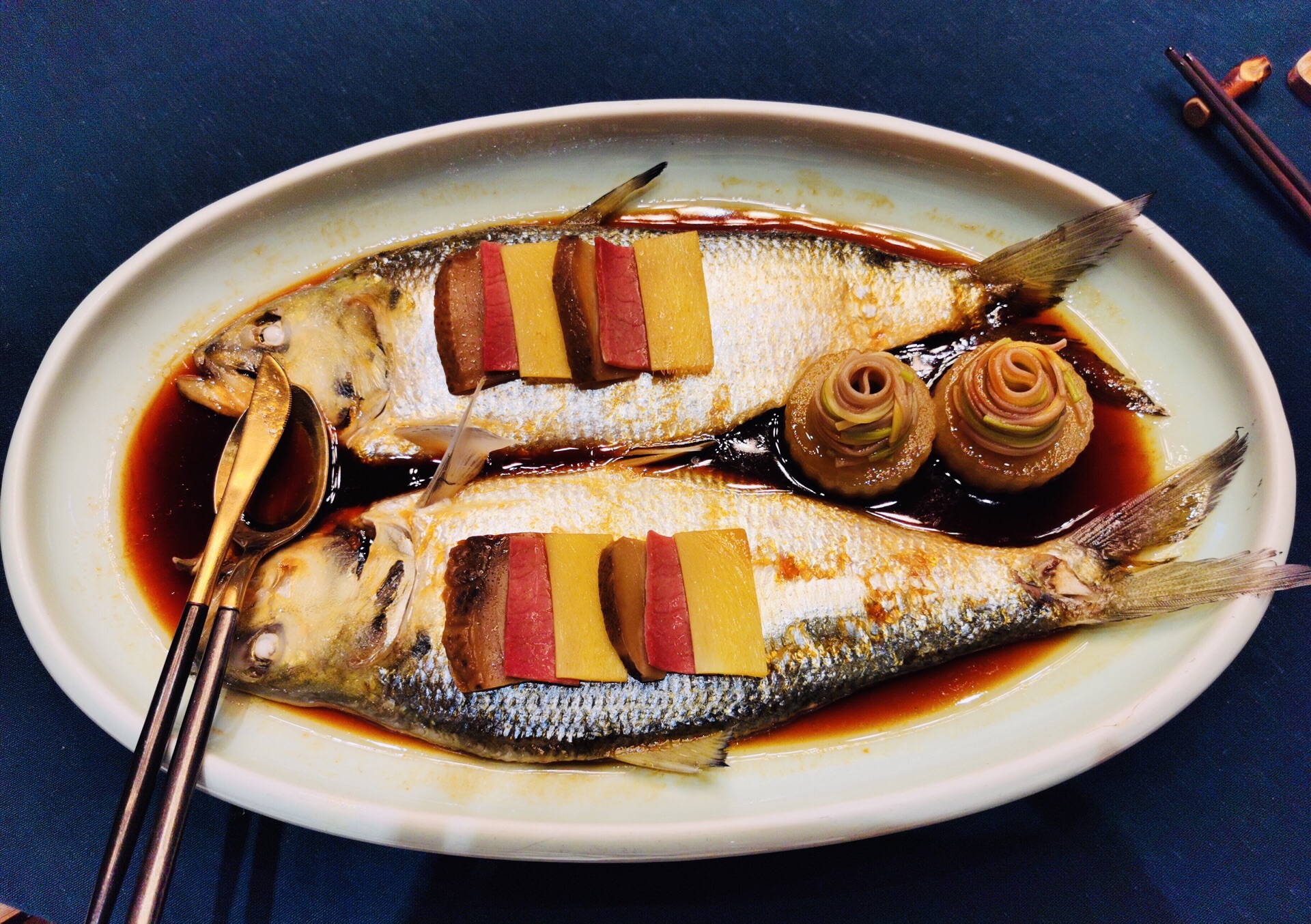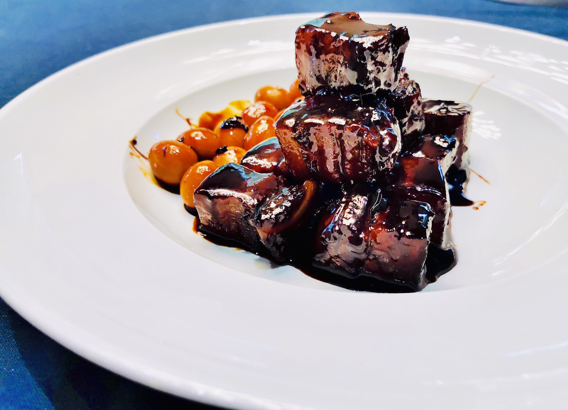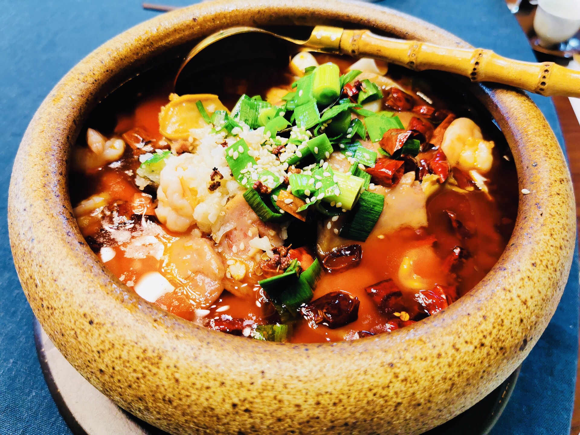金桥社区真的是各种高大上,宽阔的马路,一路过来还有教堂和国际学校。周边的绿植覆盖率也很高,透着各种静谧之感。 这家是独幢的建筑,招牌很是惹眼。也是一家以茶入菜的餐厅,江南婉约风,楼层特别高,挑高的空间给人的感觉很好。冷菜【桃胶桂花芋艿】跟甜品一样,甜度适中,红色的桃胶带有桂花的清香,底部有一颗芋艿,很糯。【酱油江鳗蛋黄卷】造型很好,蛋黄夹在江鳗中,整齐排列,鲜香弥漫。【和风脆皮鸡】到有点粤菜的意思,脆皮鸡确实皮脆肉嫩,沾一点甜味的蘸料更佳。【功夫带鱼卷】带鱼很吃功夫,去骨和刺,卷起来外面包裹了酱汁,鲜甜。【马兰头石榴包】讲究不时不食,石榴包造型客人,里面包了调味过的马兰头,清香扑鼻。【荷风四味】中式风韵,里面有油爆虾各种蔬菜、花生等小食,开胃佳品。 热菜几乎都是硬菜。【金牌普洱红烧肉】普洱的融入更加增添了意境,红烧肉方方正正,浓油赤酱的,每一块都很入味,五花肉肥瘦相间,还搭配了鹌鹑蛋。【XO酱元贝炒芦笋】很清爽的一道菜,元贝个大新鲜,芦笋也很解腻。【薄荷烧汁肋眼皇】rib eye超级嫩,薄荷叶混合一起吃很清新。【二龙戏珠】是台好戏,龙井茶香搭配小青龙,用芝士焗的小青龙弹牙得很;【膏蟹醉花螺】上桌就闻到浓浓的花雕香,汤汁经过十多味调料的融合特别鲜美,加上带膏的蟹肉和入味三分的螺肉,带有海鲜自然的甘美。【江阴蒸鲜鲥鱼】鲥鱼带有新鲜的鳞片,鲥鱼的调味料很棒,鱼肉丰腴。【麻辣水煮八仙锅】高级版毛血旺,里面的午餐肉用的是最好的,香味自然浓郁,我喜欢吃底部的黄豆芽,料很足;【江南鲜时蔬】里面的鸡肉米和大虾仁很搭配,吃出春夏的感觉。 汤是一樽【金兰花炖花胶】花胶大片很有嚼劲,纯净度高,汤很清淡还有金兰花朵朵,很适合女性品尝;【二嫂担担面】麻辣鲜香,面条吸附了浓郁的汁水好吃到没朋友;【百香果布丁】一款新出的甜品,用的也是百香果壳的盛器,里面有颗粒状的百香果,加上绵密酸甜的布丁,很别出心裁。