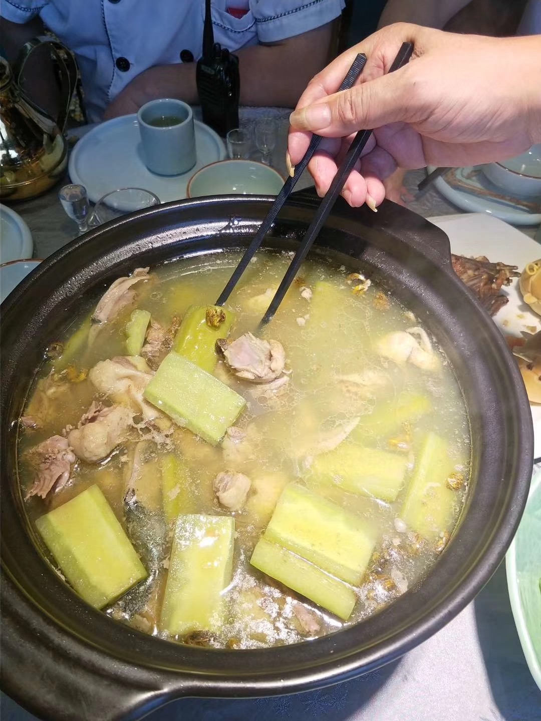 这里的环境不错,坐窗边还可以看风景,招牌菜是空中鸡煲,点了脆烧皮鸡,苦瓜煲鸭,还有清炒兰豆白合...饭店位于达镖国际酒店49楼,这里的环境不错,坐窗边还可以看风景,招牌菜是空中鸡煲,点了脆烧皮鸡,苦瓜煲鸭,还有清炒兰豆白合,味道都还不错。