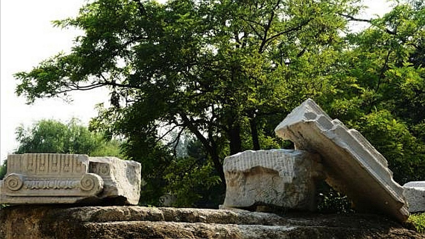 方外观是圆明园西洋楼遗址一景,原为一座清真寺,是乾隆的爱妃(即容妃,也称香妃)做礼拜的地方方外观是圆明园西洋楼遗址一景,原为一座清真寺,是乾隆的爱妃(即容妃,也称香妃)做礼拜的地方。建于乾隆二十四年,为三开间的欧式小宫殿,屋顶却是中国式的重檐四坡琉璃顶。现在只剩断壁残柱,让人不仅扼腕叹息。