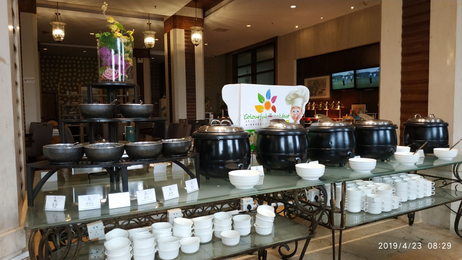 网友2019-04-23各种水果,奶类,现煮的粉面麻辣烫馄饨,粤式点心,各类花茶等,物有所值。早餐比几年以前有质的飞跃这里环境很好,看着高尔夫球场,郁郁葱葱。早餐比几年以前有质的飞跃。各种水果,奶类,现煮的粉面麻辣烫馄饨,粤式点心,各类花茶等,物有所值