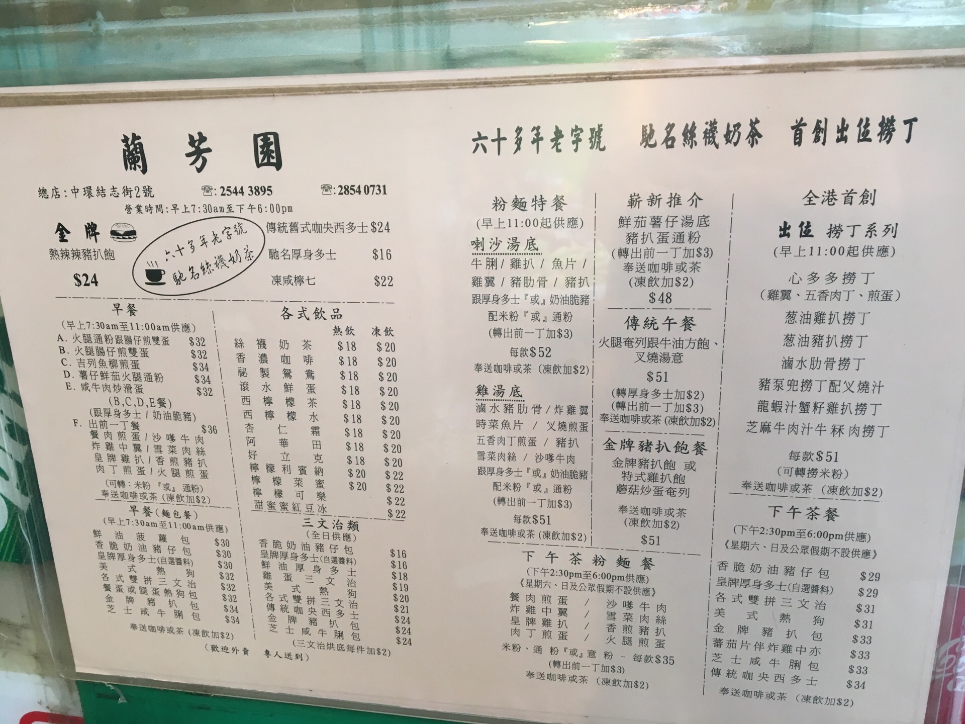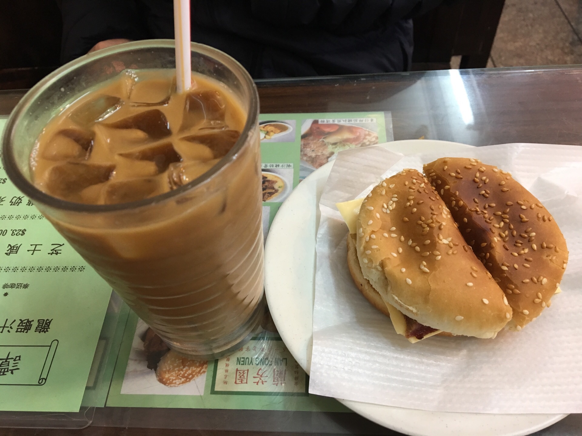 看到兰芳园的店铺还是有一些惊讶的,这么有名的一个店就在这么破的一个铁皮屋里面,而且还这么多人排队。来到兰芳园就一定要喝丝袜奶茶,刚刚入口的时候,我觉得味道还是不错的,但是喝到后面冰块都化成水的时候就感觉水水的了,所以要喝要快,不要等冰块都融化了。其他的土司,我没有特别的感觉,很普通的味道 【口味】 【环境】