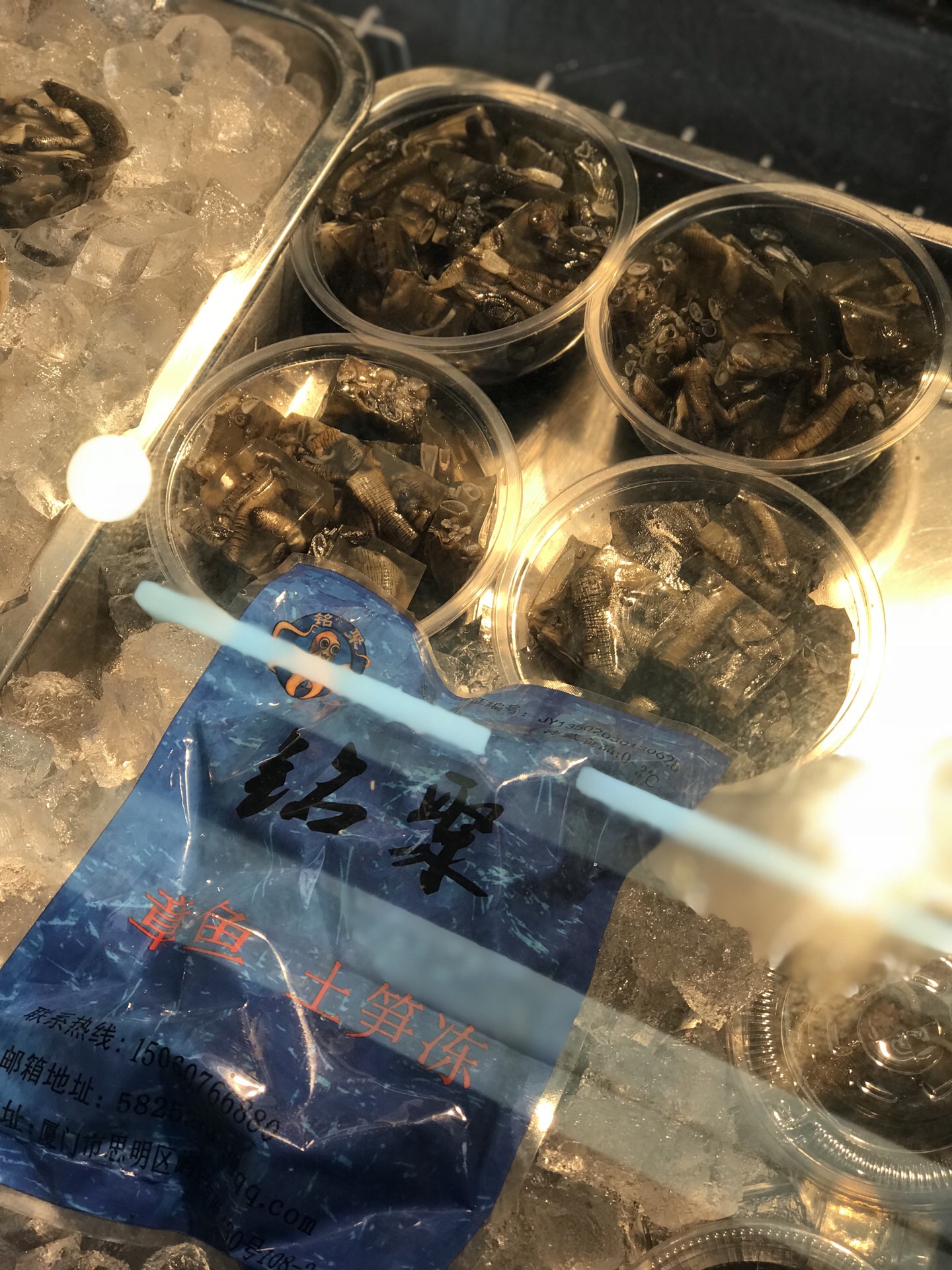 位于屿后南里的这家铭聚章鱼土笋冻,店不大生意却是极好的。店里用餐都会看到好多人来打包带走。有过来吃松柏麻辣烫的绝对值得过来一吃这家。 值得一夸的土笋冻,现在好多地方吃到的土笋冻都没有在这家店吃到的口感好。这家的土笋冻都是用新鲜的沙虫制作,一吃就能吃出来的区别,又脆又嫩,非常好料。 另外章鱼新鲜脆嫩到弹牙,满膏的章鱼头,咬到嘴里那一刻,感受到唇齿间那一颗颗的膏,糯糯的口感,搭配上酱汁也是让人爱的不得了。