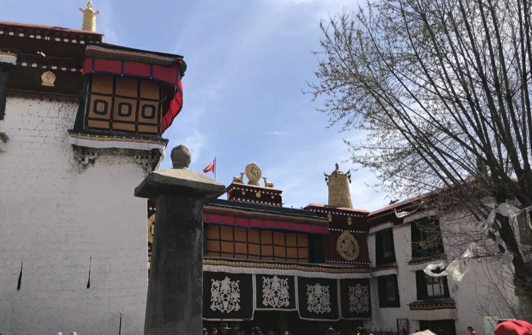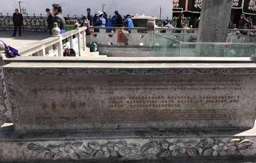这里聚集了乌泱泱一大群游客与信徒,是来之前没有想到的。一块碑石记载了文成公主与松赞干布的婚姻意义,是汉藏文化交融的见证。