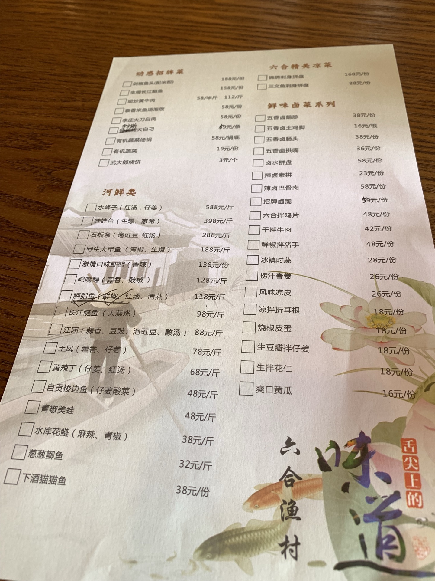 来成都住在新都区保利公园皇冠假日酒店,中午朋友带着去附近的六合渔村吃饭。饭菜味道还好,就是感觉服务员一心推销利润高的菜品胭脂鱼。已经明确表示我们两个人吃不了两三斤的鱼,不想点鱼,还是热情过度地说找领导允许卖给我们2斤的,按照一斤半收费。不好意思也不想再纠缠了,只好答应。鱼很快上桌,虽然鱼肉新鲜,但是明显感觉不是现在炉灶上出锅的。心里感觉真是不舒服,饭店的服务员宗旨实在不欣赏。