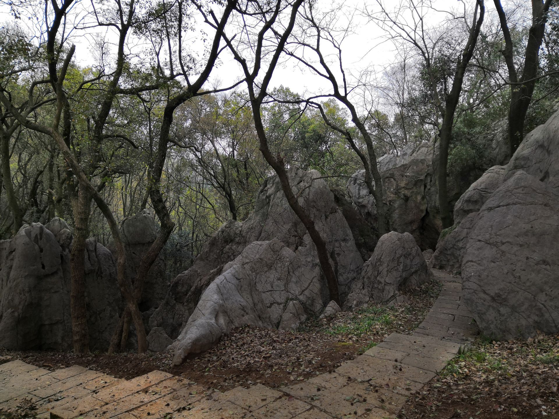 位于凤凰山中圣果寺遗址附近,青翠的丛林中有一片玲珑奇巧的灰白色石灰岩石林-----月岩