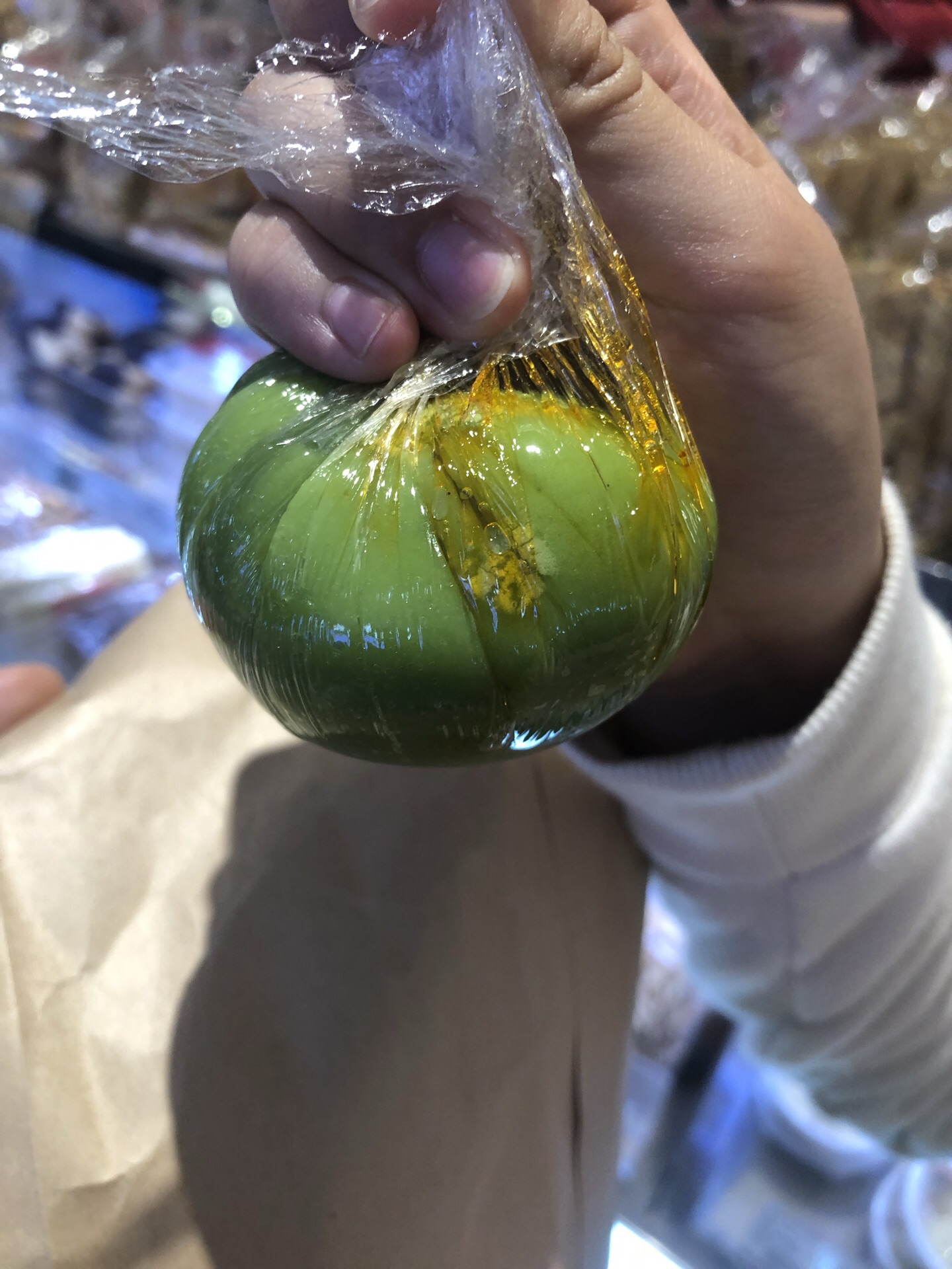 沈大成的豆沙不是很甜,吃青团的日子当然要来买了吃啊,豆沙馅5元一个,还买了咸蛋黄肉松青团,10元一个,贵也是贵了点。比较油,但是入味!