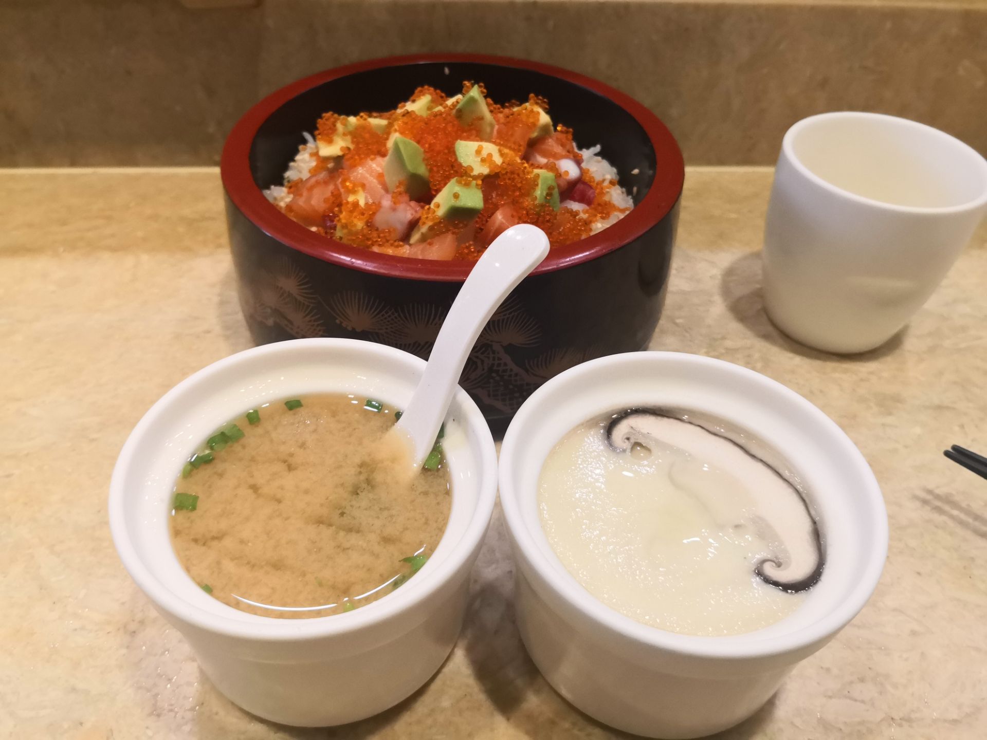 中午性价比是最高的一半套餐从30多到60多,保证男生也能够吃饱,比较喜欢寿司散饭和寿司与乌冬面的套餐