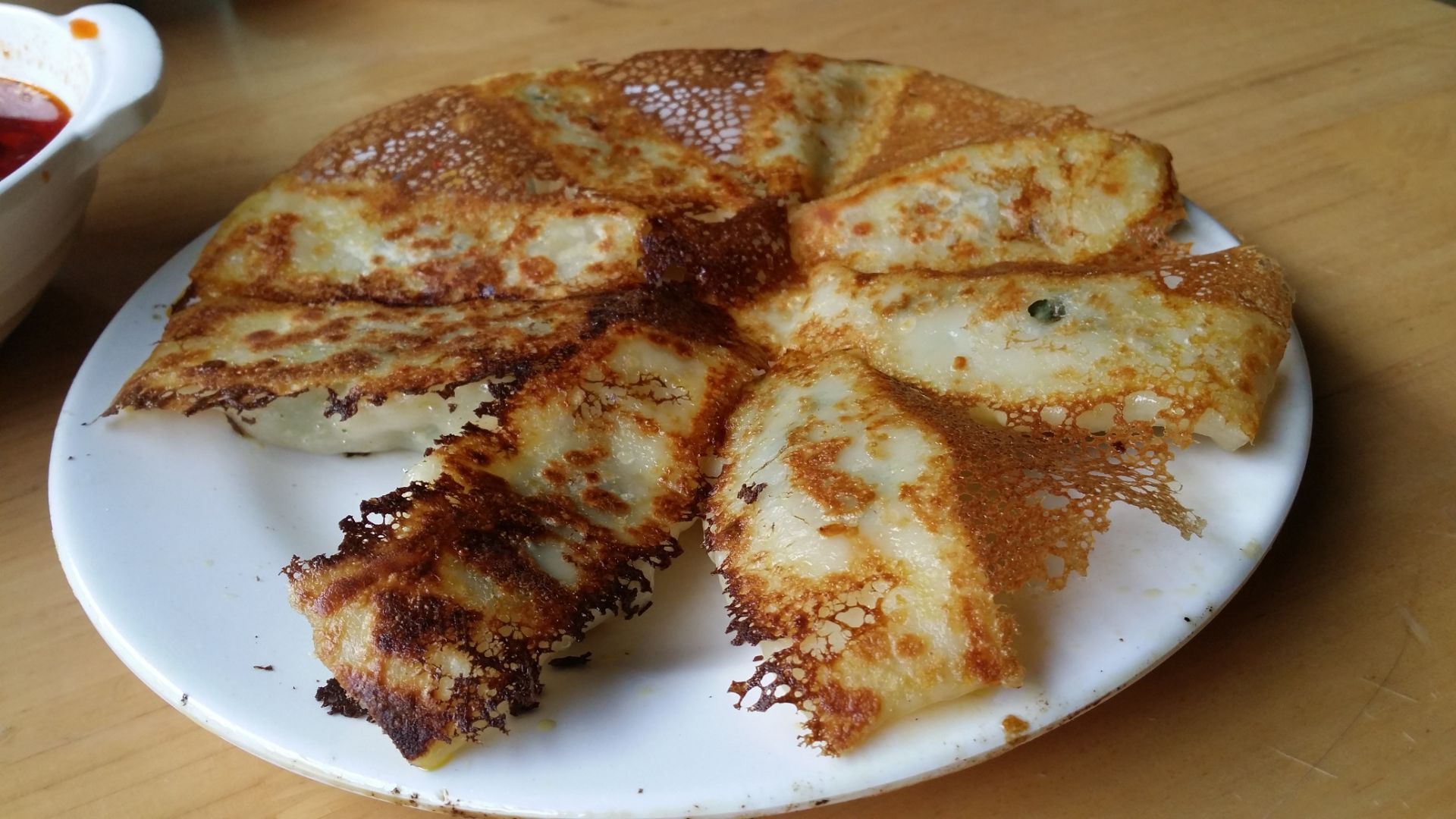 今天点评一下这里的锅贴,也就是油煎饺子,脆皮大馅儿,咬一口,油滋滋,好吃!【口味】这里的菜口味不错【口味】这里的菜口味不错。今天点评一下这里的锅贴,也就是油煎饺子,脆皮大馅儿,咬一口,油滋滋,好吃! 【环境】桌椅地面都很干净,虽是小店,标准挺高。 【服务】服务员和前台都很热情,客气。