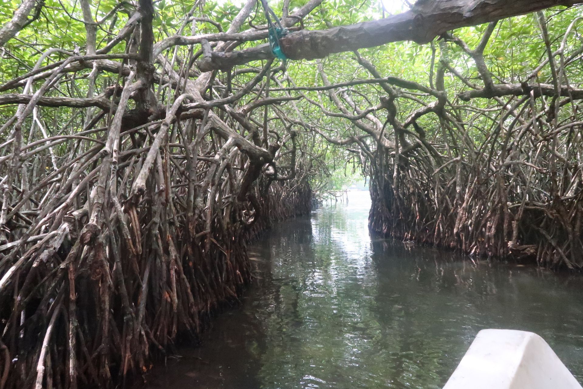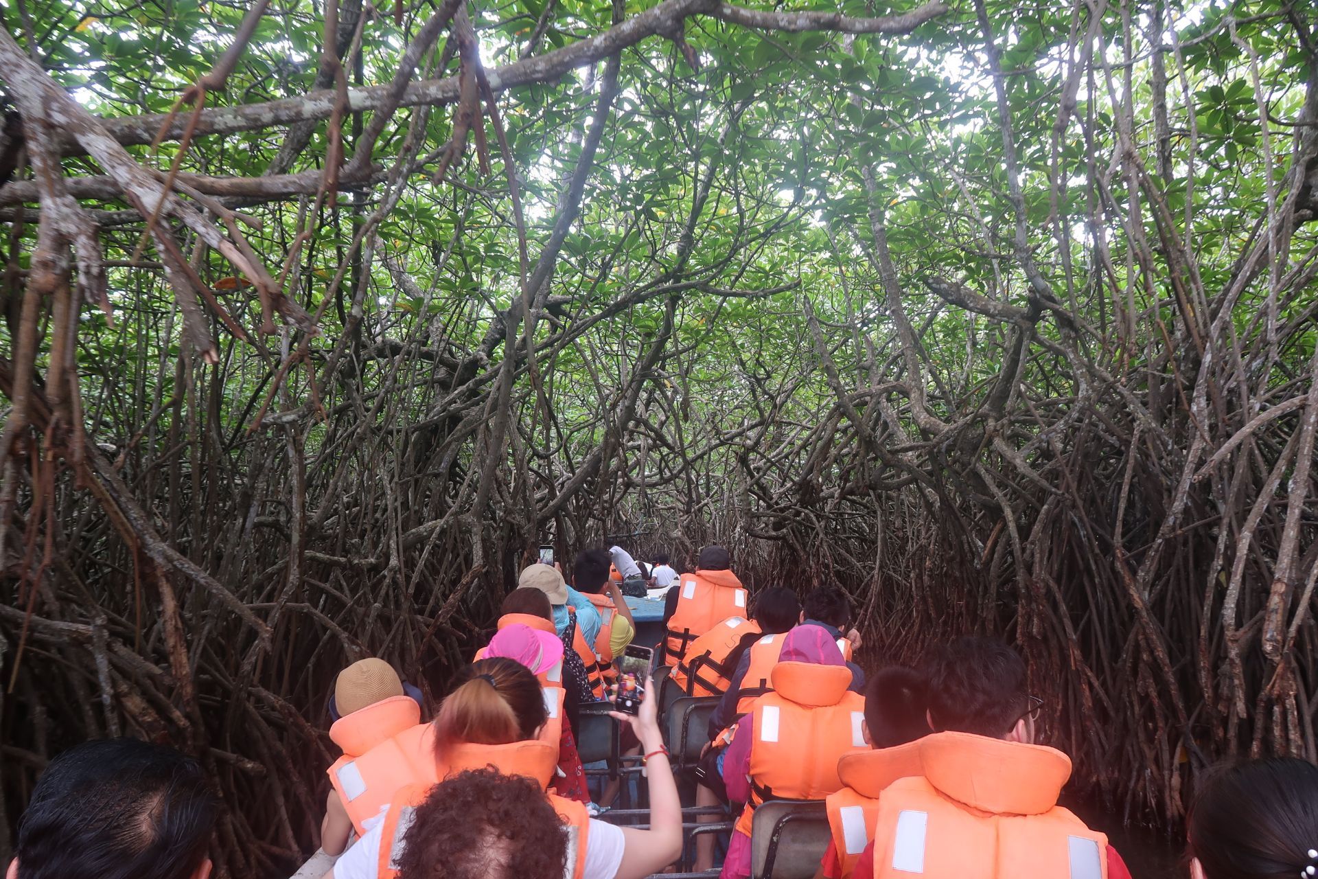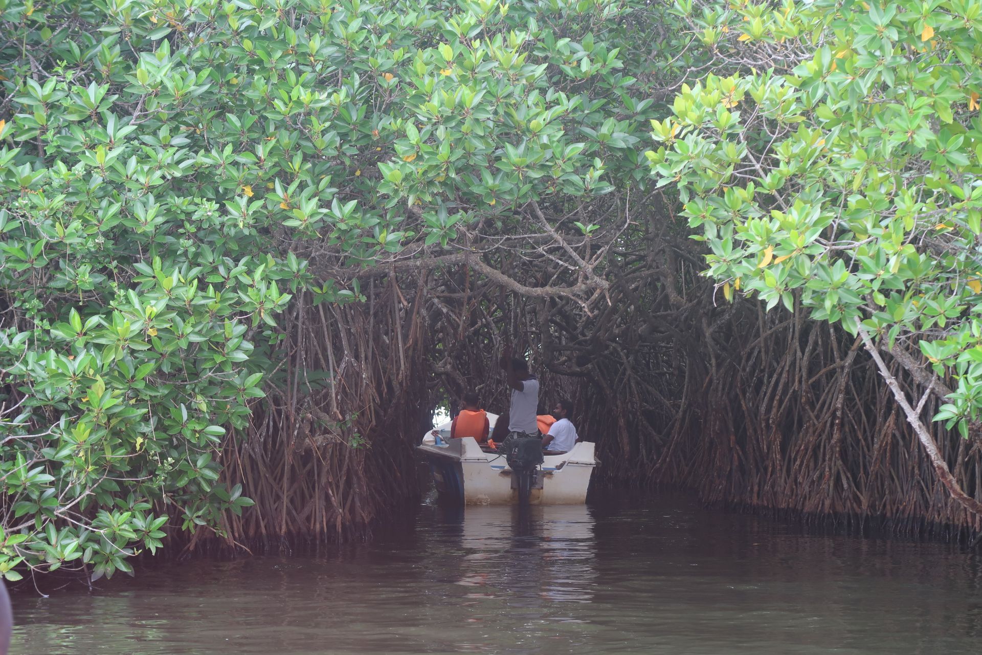 如果你以为,红树林是红色的,那么你错了; 如果你以为红树林是行走游览的,那么我错了。 红树林实际上是一种特殊的生态系统,指的是生长在热带、亚热带海岸潮间带,受周期性潮水浸淹,以红树植物为主体的常绿灌木或乔木组成的潮滩湿地木本生物群落。 反正无法望文生义。 在雨季时去的斯里兰卡,游船之前一场雨,把座位都浇湿了。 我还穿了白裙子,简直要崩溃了。 所以后来坐着坐着就站起来了。 在红树林,除了看绿色植被,还有栖息其中的小动物哟。 回程途中看到鳄鱼趴在树上休息。
