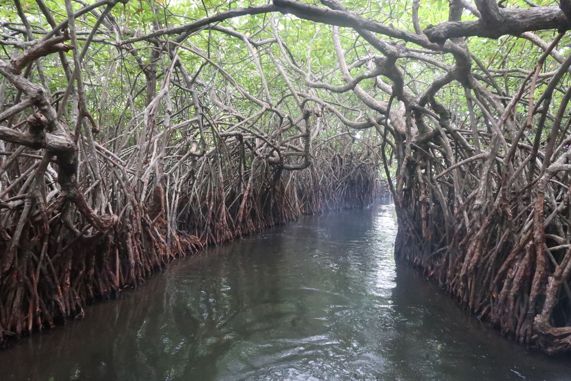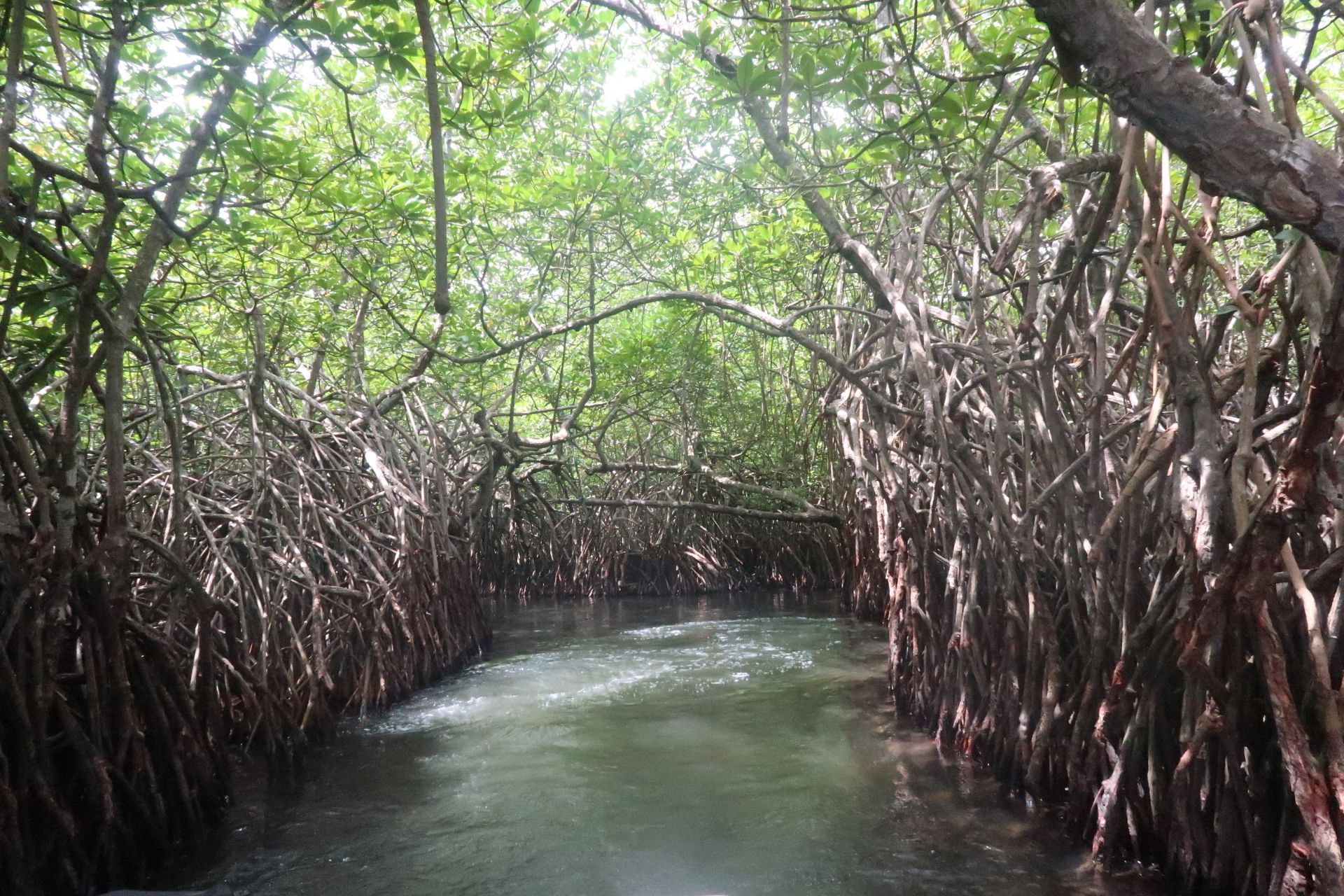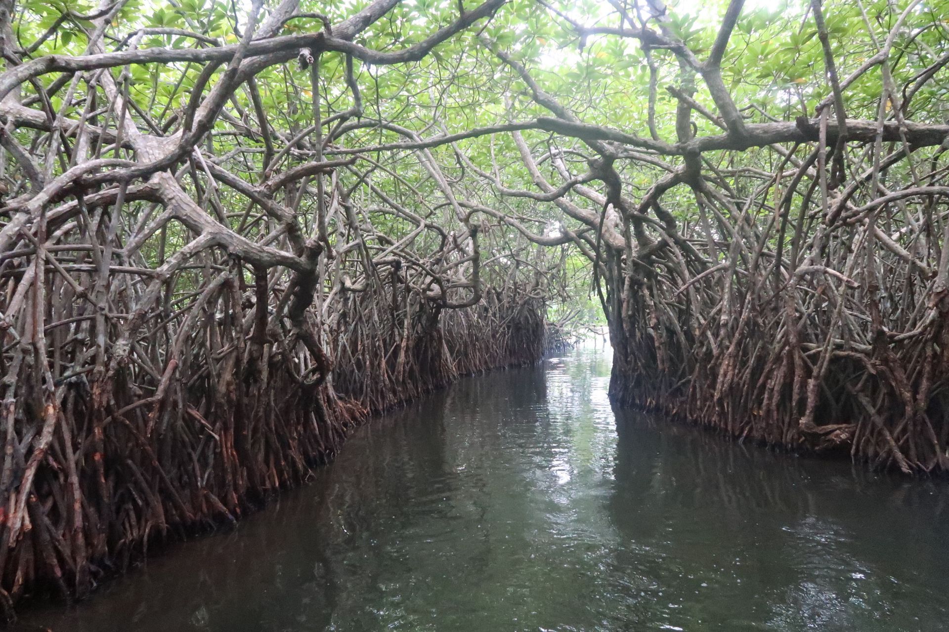 如果你以为,红树林是红色的,那么你错了; 如果你以为红树林是行走游览的,那么我错了。 红树林实际上是一种特殊的生态系统,指的是生长在热带、亚热带海岸潮间带,受周期性潮水浸淹,以红树植物为主体的常绿灌木或乔木组成的潮滩湿地木本生物群落。 反正无法望文生义。 在雨季时去的斯里兰卡,游船之前一场雨,把座位都浇湿了。 我还穿了白裙子,简直要崩溃了。 所以后来坐着坐着就站起来了。 在红树林,除了看绿色植被,还有栖息其中的小动物哟。 回程途中看到鳄鱼趴在树上休息。
