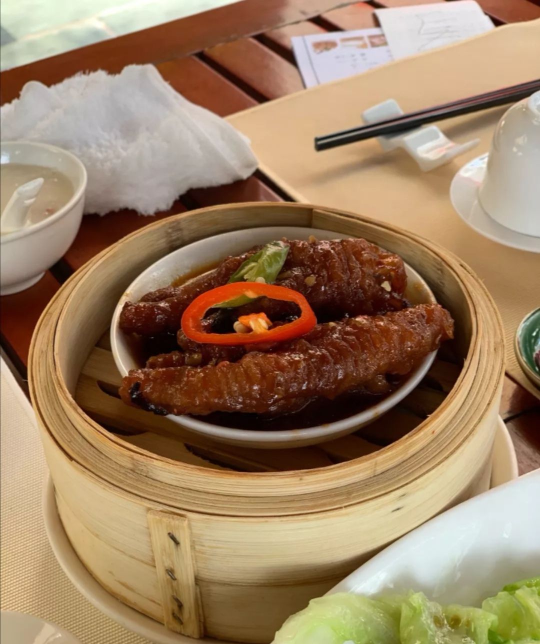 鼓汁蒸凤爪,正常水平,很不错,不惊艳。 椰汁红豆糕,椰子清香,很不错。 烧猪手,很喜欢吃,味道不错