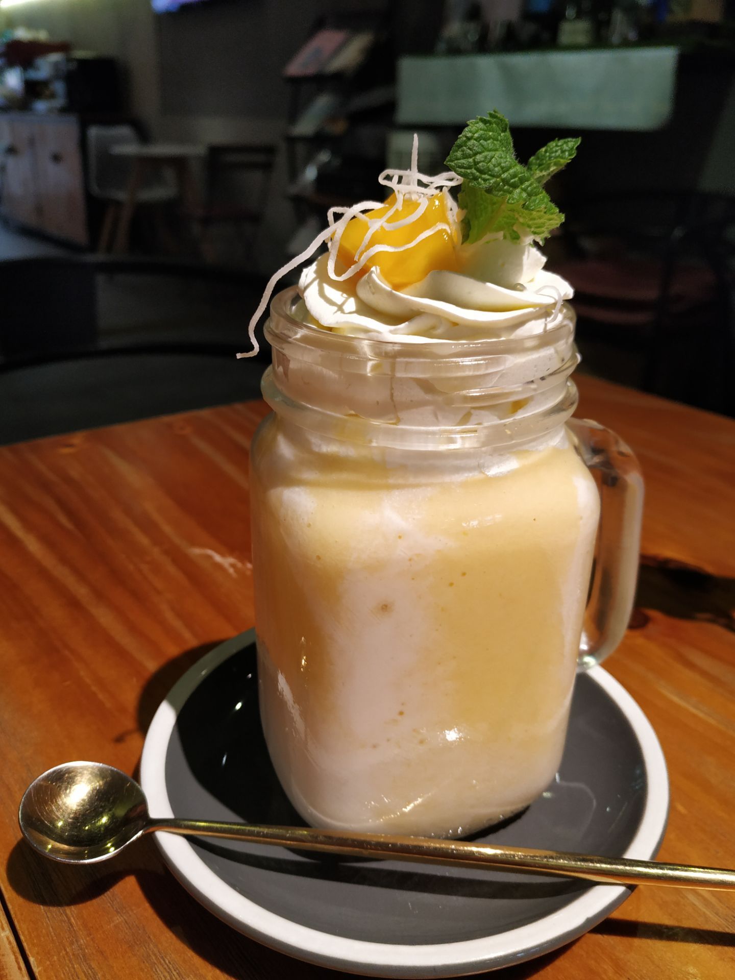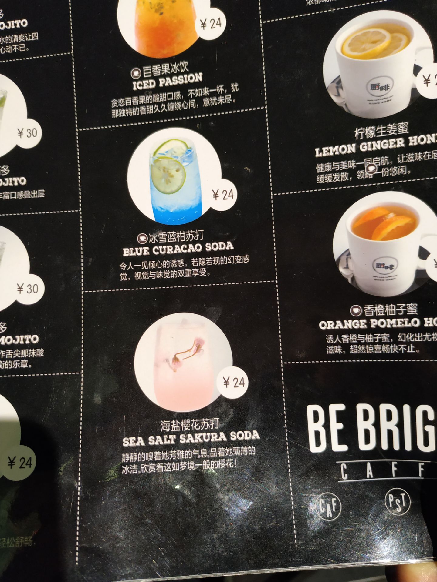 2019-04-22带着妈妈来这家Be Bright Cafe吃个下午茶,因为刚刚吃过午餐的我们还很饱,于是点了两个饮品、就没点蛋糕那类。 [芒果思慕雪山] 38元,浓郁的芒果味道,里面有不少新鲜的芒果果肉,好正!!推荐! [海盐樱花苏打] 24元,点这个是因为看到图片看起来挺漂亮的,可是上来后有点点失望了,樱花的样子不如店里的图那么好,而且上面还少了加薄荷叶去衬托,喝起来味道一般般,喝到后面还有点挺明显的苦涩味,可能是樱花的花托那里散发出来的苦涩。 店里可以免费帮忙把在它家买的咖啡豆磨碎。 它家位于体育西路(近黄埔大道西)7-11便利店旁边的路口转入小区内,店内面积不大,店内装修风格是比较简约型,也挺温馨的。