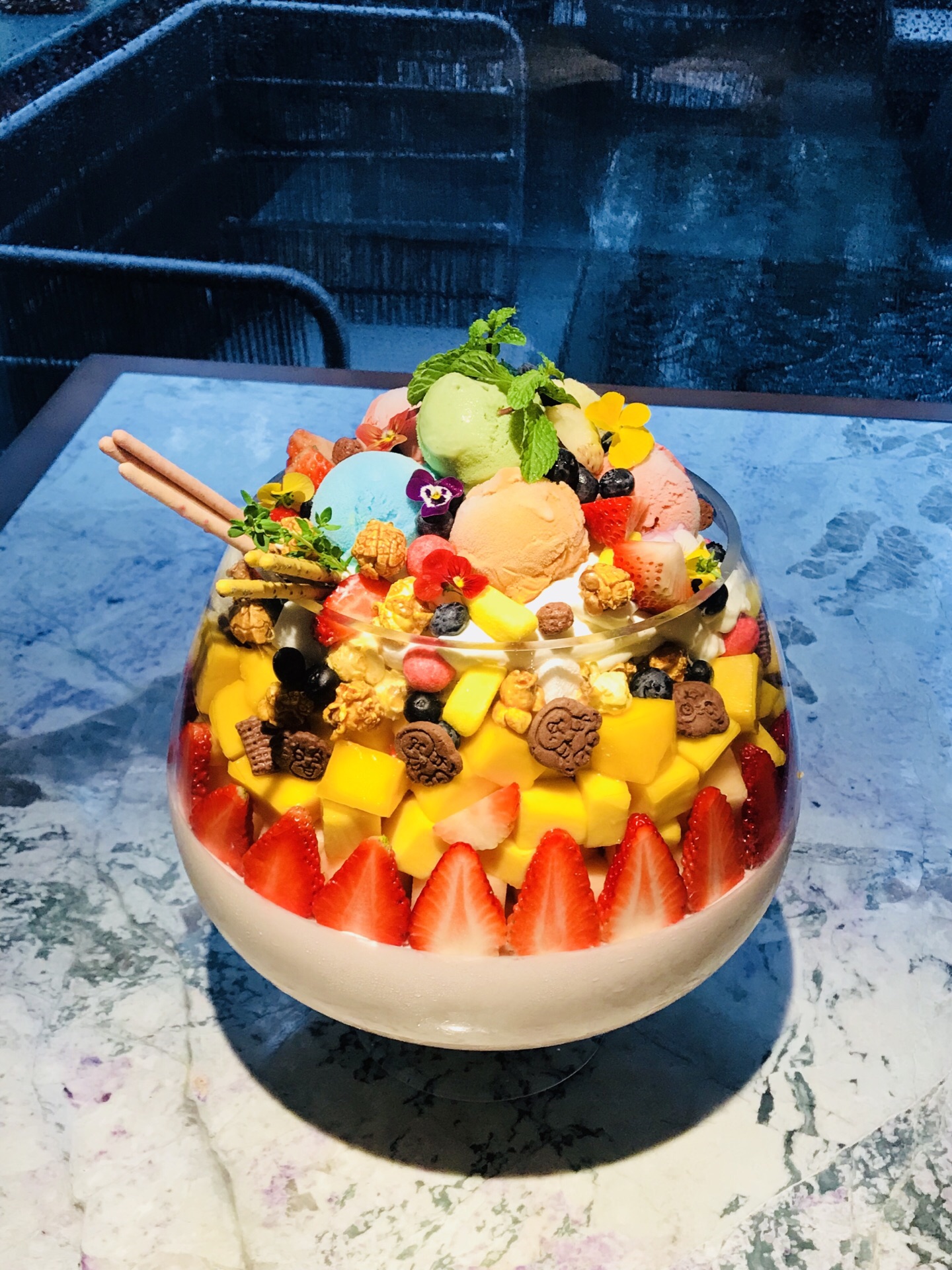 最惊艳的是他家的鱼缸冻芝士,满满一大鱼缸的各种冰淇淋,各种水果,冻芝士