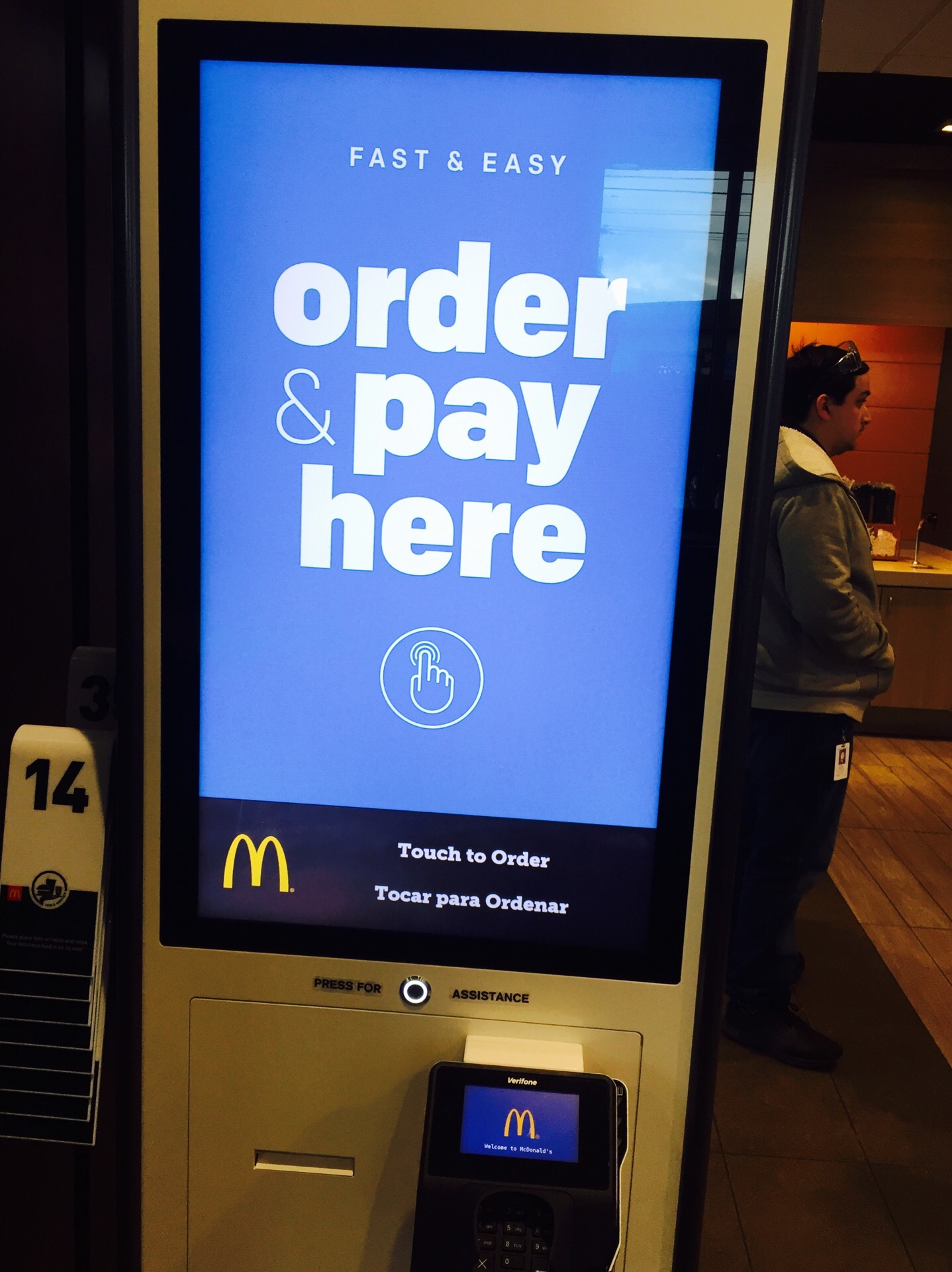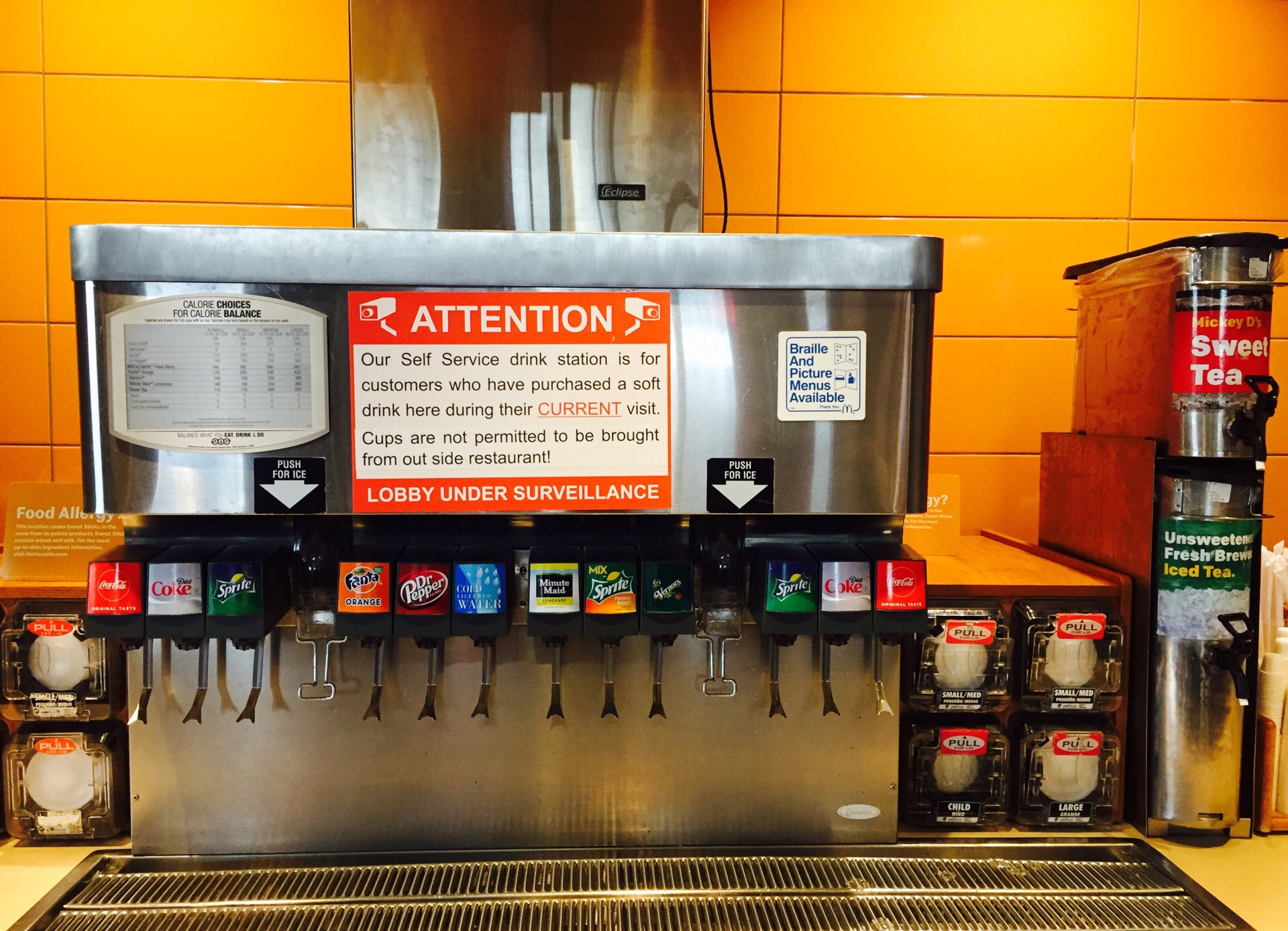 店内自助点餐的系统还真是不错。值得称道的是饮料任你喝。 【服务】自助,自助,还是自助【口味】麦当劳口味。与国内并无明显差异。 【环境】比国内任何一个店都简朴。店内自助点餐的系统还真是不错。值得称道的是饮料任你喝。 【服务】自助,自助,还是自助。