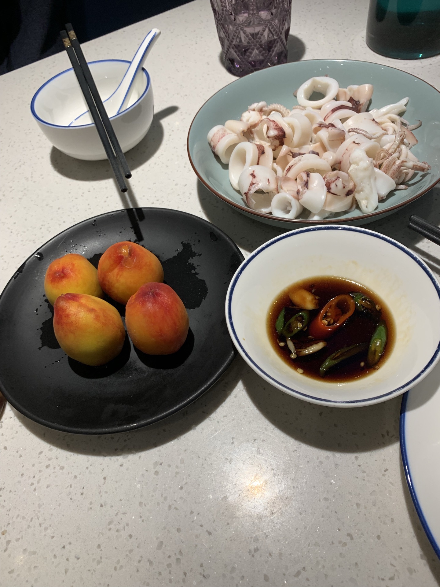 菜品都比较清淡,不太下饭,刚吃完感觉饱了,没走几步就又饿了白灼小管还提新鲜的,比较Q弹海蛎煎还蛮大份的,希望能搭配可以选择的沾料咸桃子的味道像味道很淡的蜜饯,还挺好吃的,淡淡的甜咸味石花膏配料没有图片的丰富