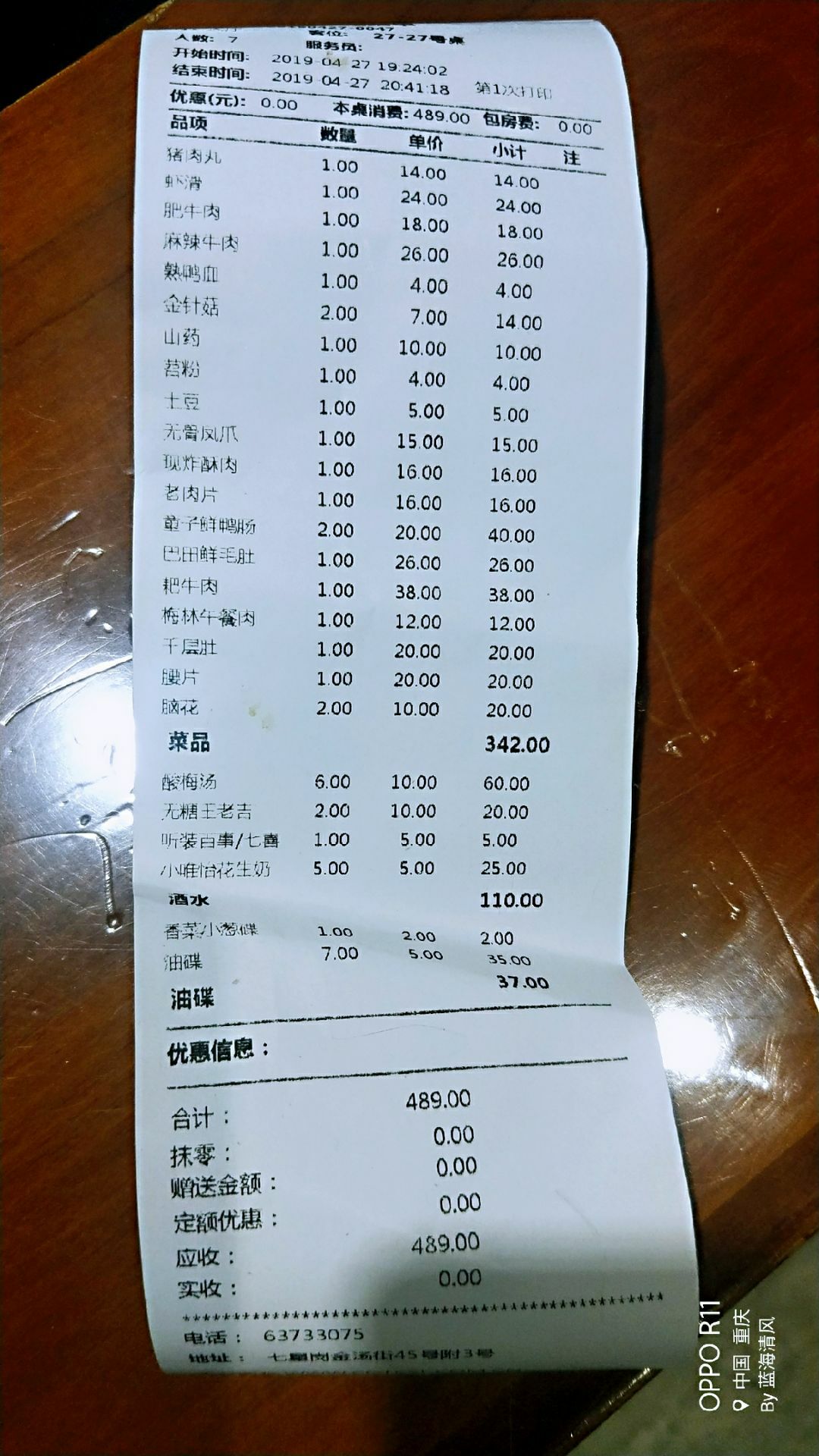 1店名由来及简介: 这家重庆巴田火锅(和平路店),创立于1994年,原名“田鸭肠”火锅,因被人先抢注了名字,为了注册自己的商标,遂更名为“巴田”火锅。 实际上现在的店名“巴田”更能体现重庆的“激情巴乡,和谐田园”的地域特征和田园风情。 作为重庆火锅中的十年老店,不变的是店主以及重庆本土特色的火锅风味。 现在的巴田火锅已然入驻重庆火锅协会会员单位,并收获重庆放心火锅五十佳企业荣誉。 2地理位置与出行: 重庆巴田火锅位于重庆市渝中区和平路301号(七星岗通远门旁)。 交通出行方式:可乘地铁1号线或者2号线到较场口地铁站1号口出,步行约800米即到(可以跟着高德地图导航走)。 或者根据自己的就近地理位置乘坐相应公交到七星岗或者临江门公交站下,再走一点路也可找到这家火锅店了。 店里环境与服务: 这家火锅店进门需要走上三层楼,里面有两个大厅,店内装修是中国国营风格特色,一看就是个老店了。 店内生意比较好,里面就餐人员还是比较多的,很多客人看起来像是重庆本地人。 服务员阿姨和大姐工作勤快,招待客人算是热情,给餐桌每个人都配上了油碟调料,并提供了免费纸巾和我们点的酒水饮料,吃火锅途中有什么事情或者问题直接喊过来说声就好。 火锅吃起来衣服上会有味道或者防止油弄到身上,可以找阿姨要个围裙带,同行一小伙伴就要了围裙穿上,也显得很有特色。 3火锅体验与菜品推荐: 这是本人来山城重庆吃的第三份火锅了。每一次都是不一样的感受。前面两次点的是鸳鸯锅,这一次点的是九宫格(微辣)火锅。 他们家的菜品新鲜,分量足,口碑好,回头客多,火锅辣而香,非常入味,是重庆本地人认可推荐的。这次火锅体验口味还是很好的。 店家给我们统一配发的油料含葱香、蒜泥、香酒、耗油等调料,虽然品种不多,但是调配起来味道还是很赞的。 我们点的桂花酸梅汤是古方熬制的地道京味,出自老北京永裕堂,300ml含量,喝起来口感不错,维怡花生奶和听装百事也算好喝的。 这家火锅店推荐菜品当然少不了他们家的招牌鸭肠,逢火锅毛肚、腰片、鸭血、虾滑、千层肚、午餐肉等也是必点的。可以推荐的还有酥肉、无骨凤爪、嫩牛肉、牛肉丸、井水豆芽、木耳、金针菇、土豆等菜品。 我们一行七个人点了很多火锅菜品,一共吃了489元,平均一个人摊下来大概70元,算是比较实惠了。