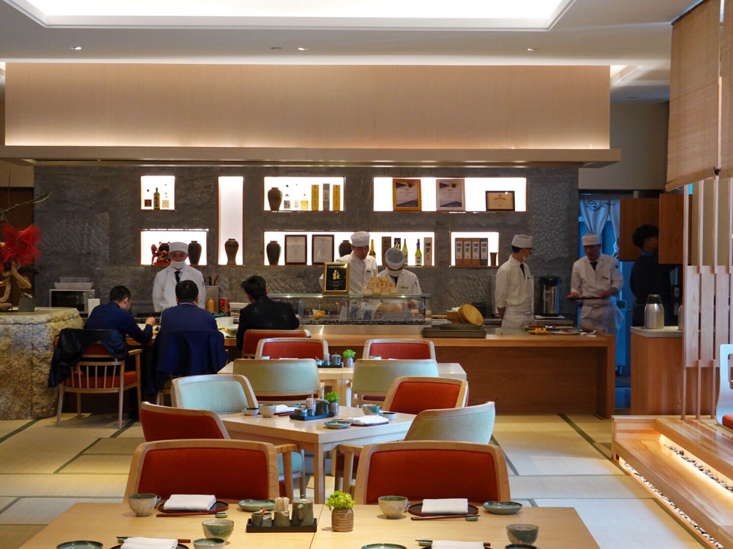入住酒店,偶尔间发现的店:竹善日本料理。 没有想到阿纳迪酒店的二楼里竟有一家日料店! 店内日式装修,原木色系,清新素雅,榻榻米很舒服, 店员服务周到贴心,主动问候,添水及时,提供热毛巾! 坐在吧台就餐可以看到大厨出神入化的的操作! 竹善日本料理的资深大厨刘恩成,获奖无数! 特别限定的料理,单人餐,168的性价比真心超高! 蔬菜春卷,摆盘精美,艺术感强,酱汁酸甜开胃! 松茸海鲜汤,鲜美无比,甜虾刺身拼盘新鲜肥美,三文鱼厚切。 海老天妇罗,控油非常好,天妇罗薄衣很脆,鳗鱼柳川锅,鳗鱼吸收浓郁的汤汁,入味。 竹善创意寿司拼盘,米用的很好;自制的提拉米苏很好吃!