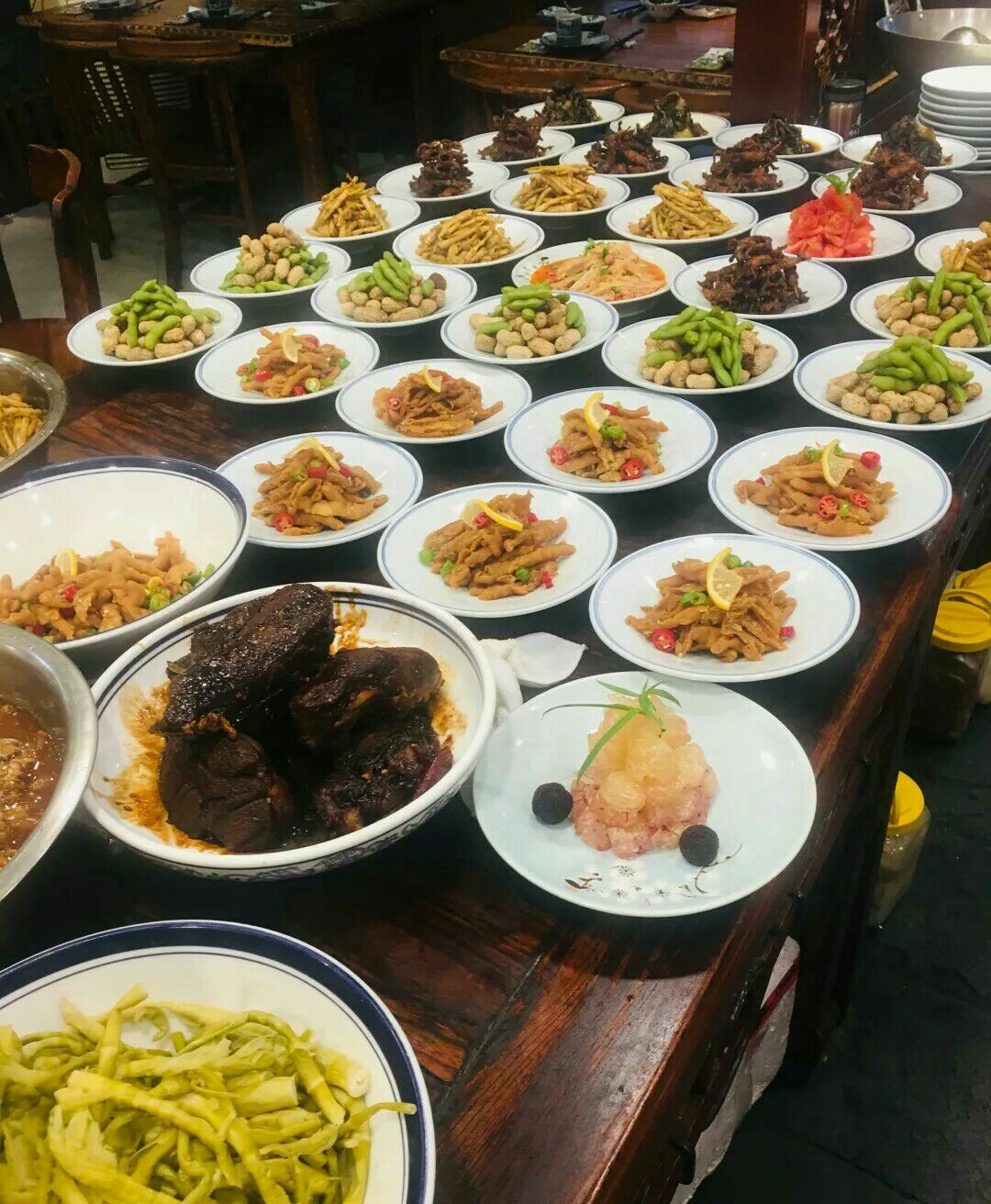 ...年代的那种风格,在二楼订的包厢吃饭,菜品很丰盛,记忆深刻的是大发糕,感觉特别好吃,总体感觉不错在百丈东路附近的一家店,装修是七八十年代的那种风格,在二楼订的包厢吃饭,菜品很丰盛,记忆深刻的是大发糕,感觉特别好吃,总体感觉不错。