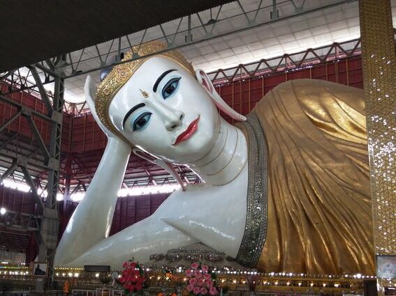 网友2019-04-29卧佛神态安详,眼睛由玻璃镶嵌而成,特别美丽仰光乔达基卧佛寺供奉着缅甸最大的卧佛像,始建于1970年,经历了各种天灾后,1960年正式成为现在的大型卧佛像。卧佛神态安详,眼睛由玻璃镶嵌而成,特别美丽。卧佛右手轻轻托着头部,眼睛慈悲注视芸芸众生。