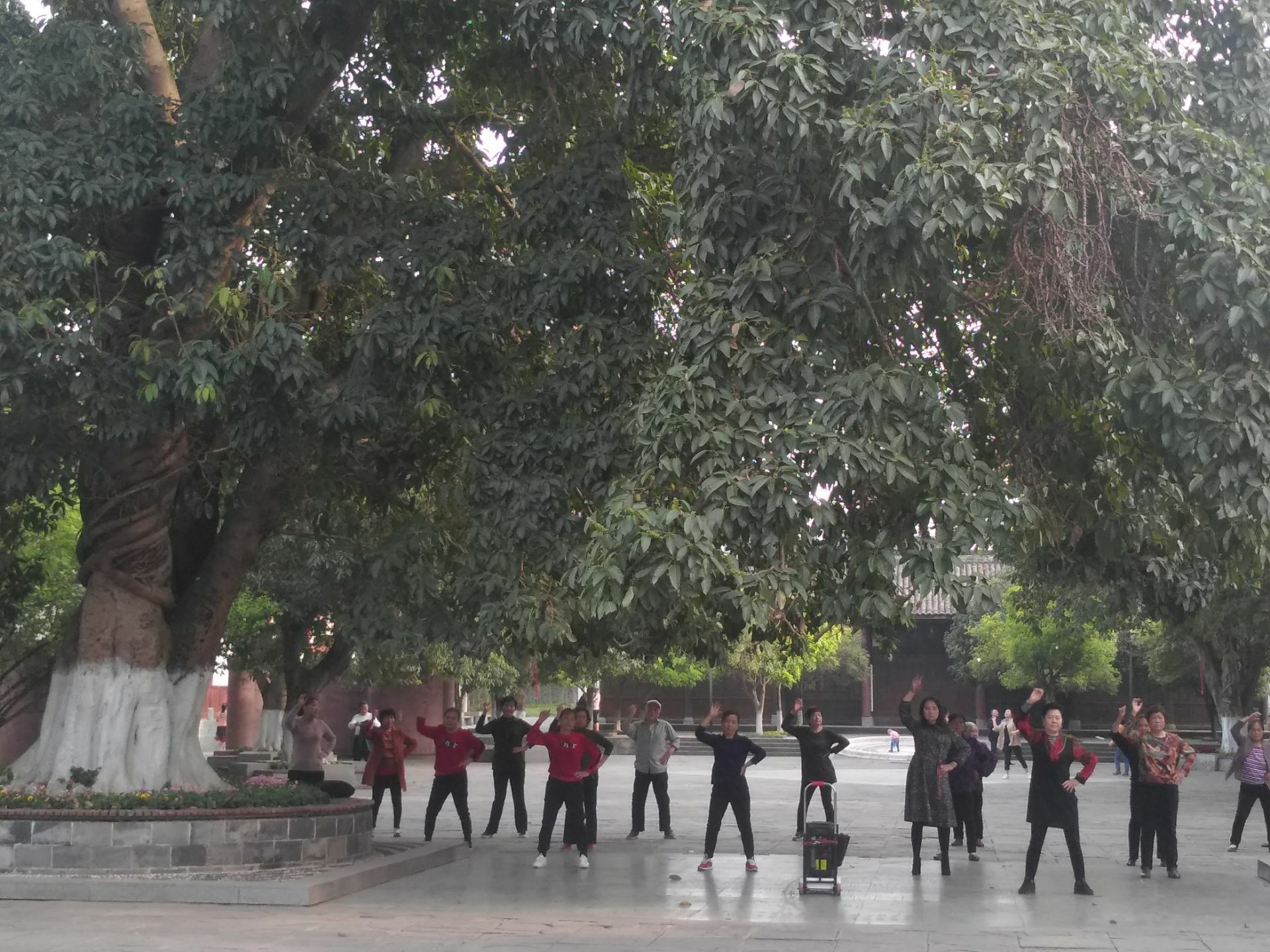 相对于其他的建筑来说,这里的建筑更新一些,可观赏性也相对较低这也是一个不太容易被大家发现的地方,要不是清晨来这里转一转,发现有很多大妈在这里跳广场舞,也不会进来看看。整个园子的广场很大,被很多叔叔阿姨们所包围。相对于其他的建筑来说,这里的建筑更新一些,可观赏性也相对较低。