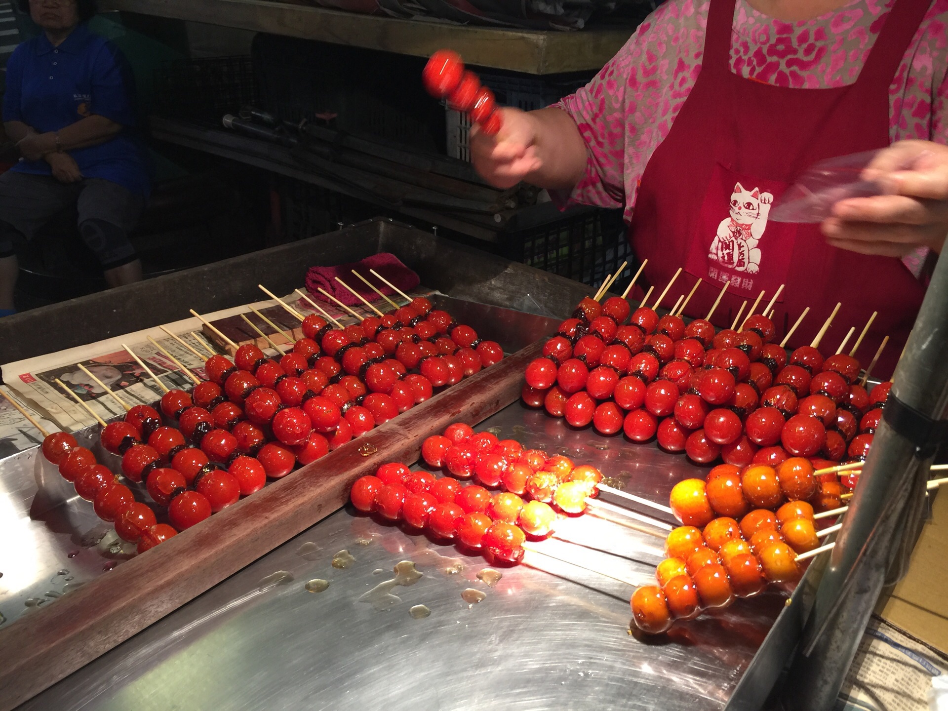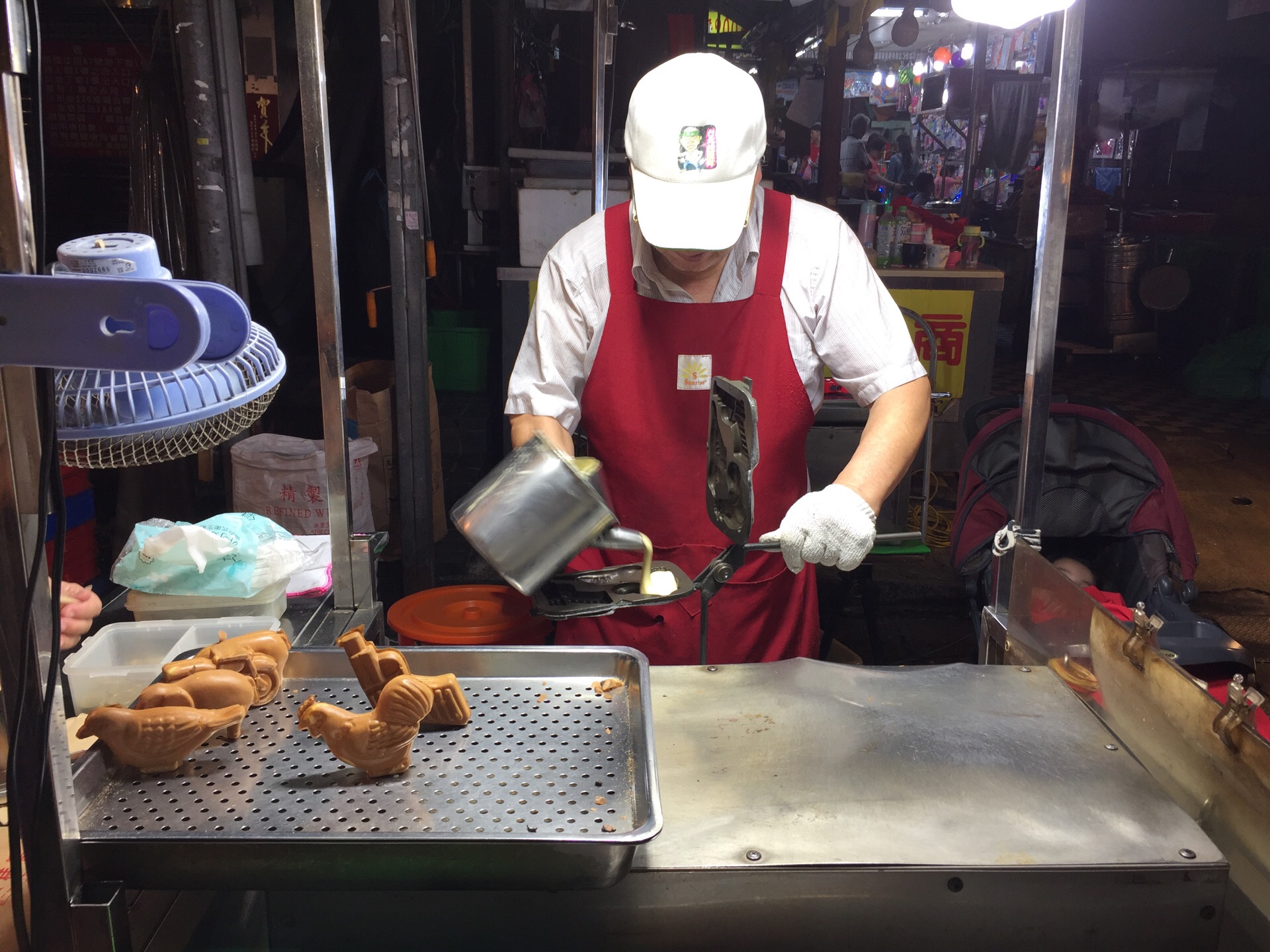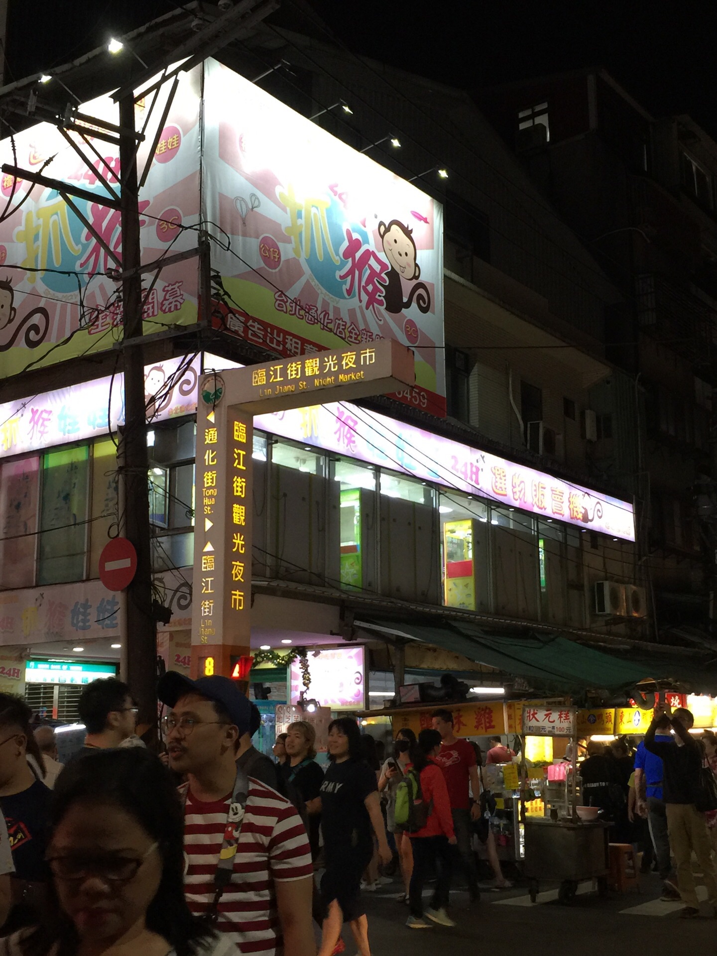 通化街夜市,小吃攤多樣個個有特色。 小米甜甜圈、宜蘭三星蔥餅、魷霸子烤大魷魚、冠軍剪刀雞蛋糕、蕃薯王脆皮甘梅薯、還有水果攤上的鳥梨、芒果青、芋頭冰、現打果汁吧消暑,還可以射汽球消消氣。 所以我善歡晚上喜歡穿上人字托,挽著老公手逛逛夜市。