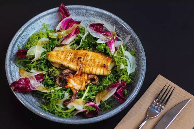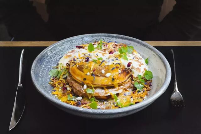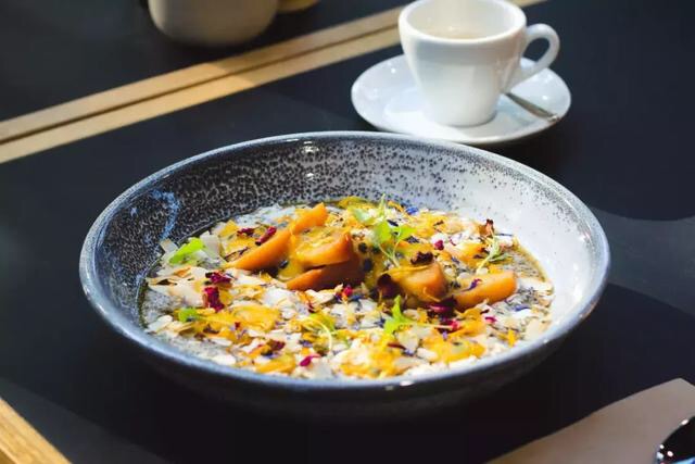 餐厅内戏剧性的落地窗充满了自然光线的广阔空间。适合餐馆的工业建筑,室内有抛光混凝土地板,顶部有裸露的铜管和红色管道。多个咖啡师在房间中央设有一个不锈钢材质的椭圆形酒吧。另一面,叉车正在卸载托盘,这是工业和现代感结合的一幕