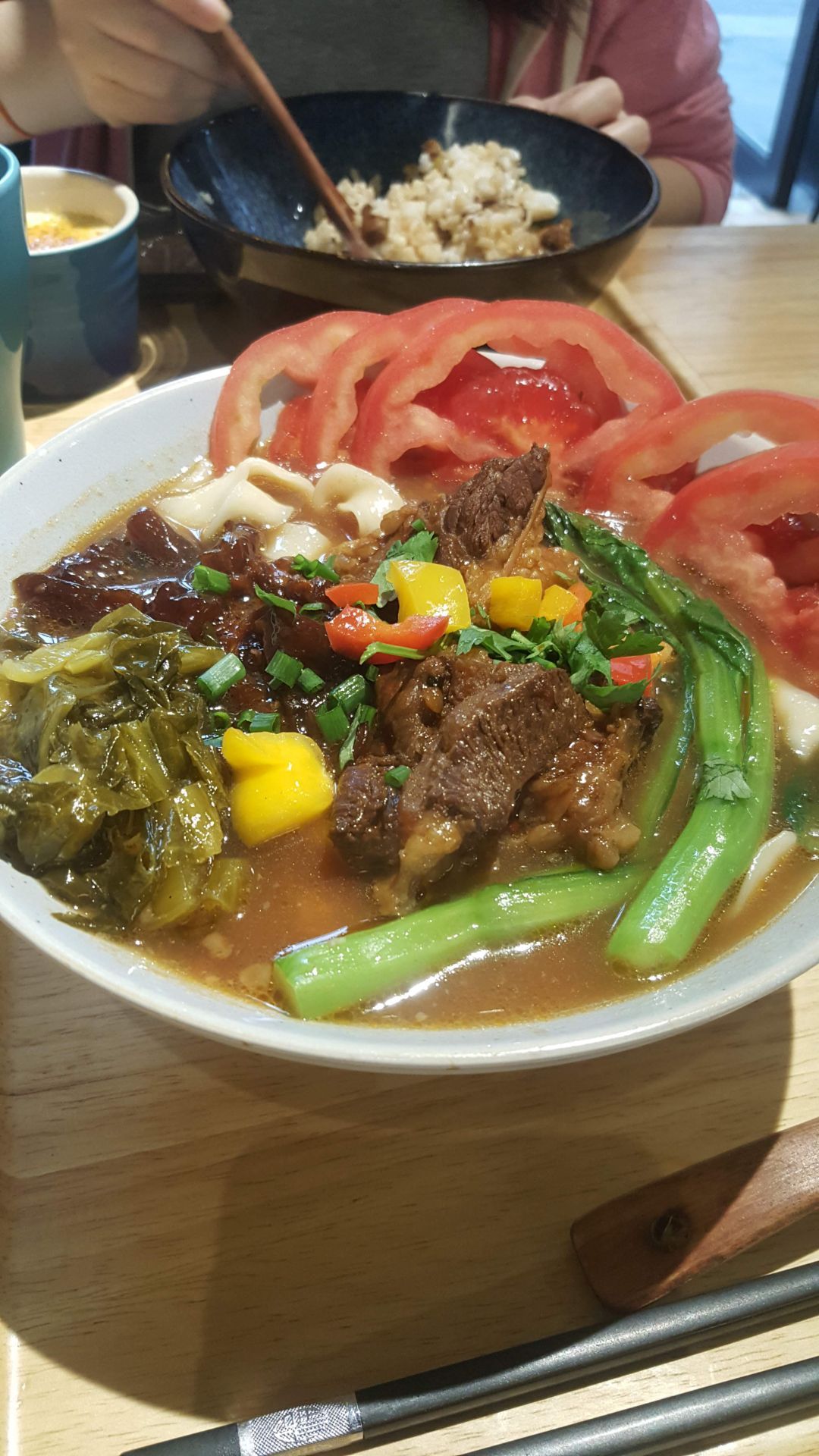 网友2019-05-01早餐,肉鬆蛋餅,醬汁搭配,味道不錯!一天早餐,一天接近中午時吃的!意外地好食一天早餐,一天接近中午時吃的!意外地好食!早餐,肉鬆蛋餅,醬汁搭配,味道不錯!吐司也好味,麵包脆脆的,不會太硬!肉燥飯,妹妹點的,我沒有試過,但她也說好味道,還有燉蛋,不錯!半筋半肉牛肉麵,好味!