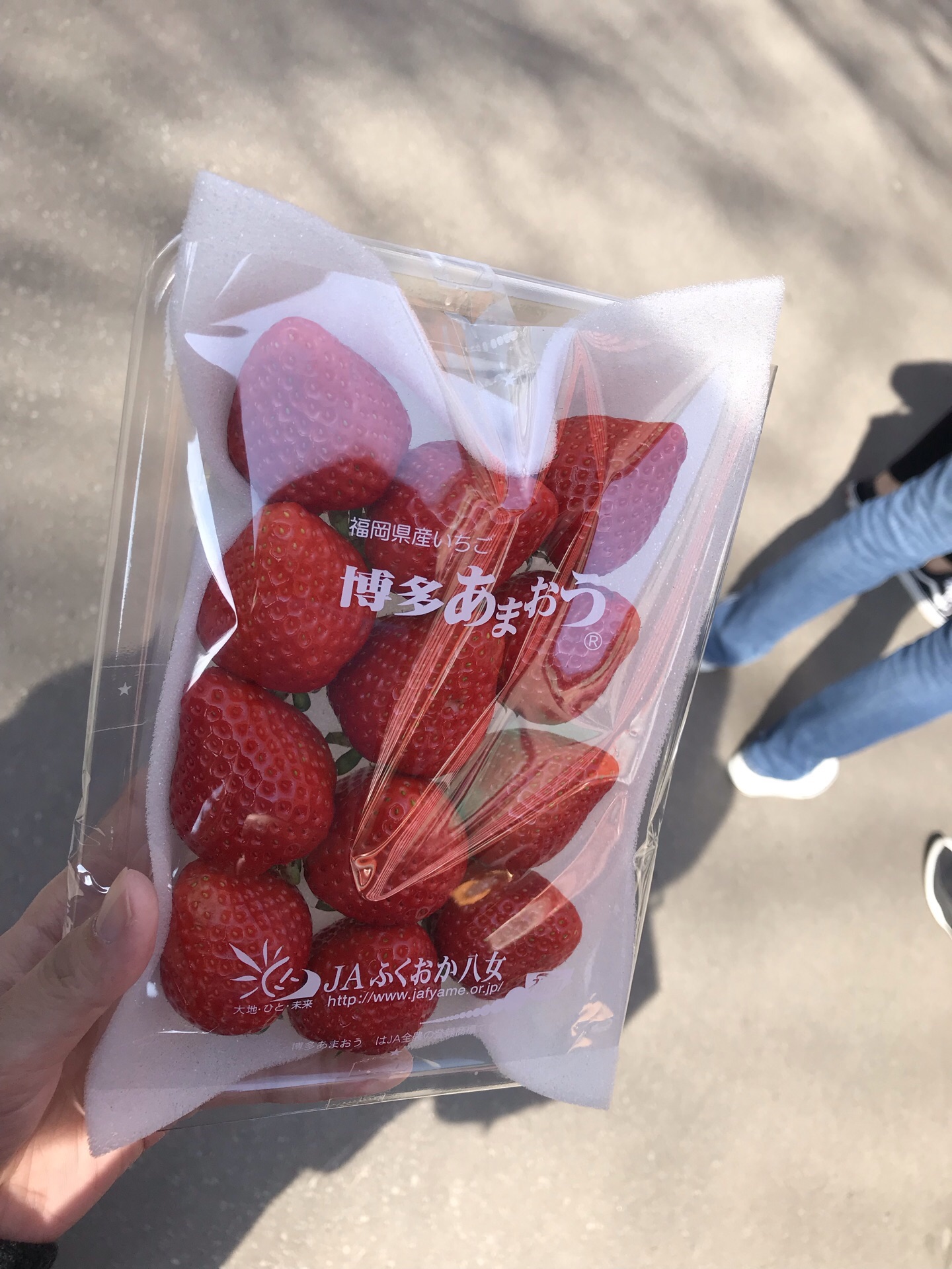 一个国家公园,总体上来说在日本算是很一般的地方,由于季节不对,要花没花要雪没❄️,只有一个大湖是整个公园的景色,可以在湖边远看雪山。再过一段时间有樱花的话就是另一番景色了。公园入口处有一些小商铺,买到了草莓,这个草莓算是这地方的发现,酸甜久违了小时候的味道。