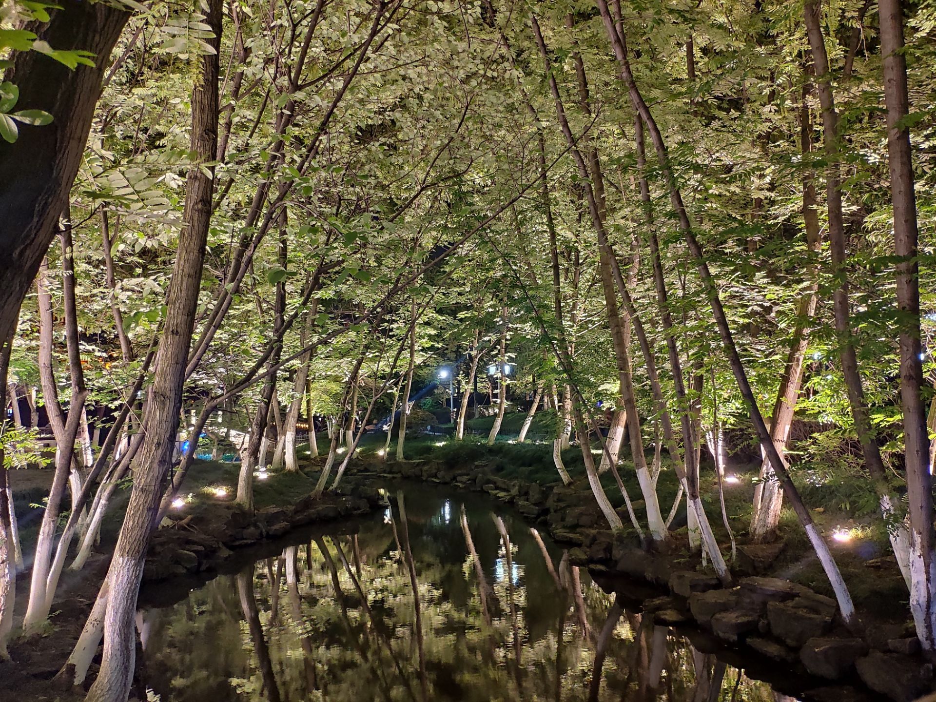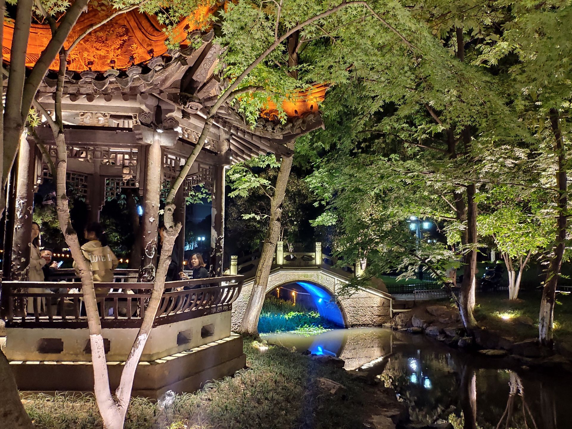 饭后散步绝佳,跟着导航一路过来,晚上灯光漂亮,有江南水乡的韵味,绿植丰富,走走逛逛,很舒适,整体不大免费的社区公园,饭后散步绝佳,跟着导航一路过来,晚上灯光漂亮,有江南水乡的韵味,绿植丰富,走走逛逛,很舒适,整体不大,逛完大致半小时左右!