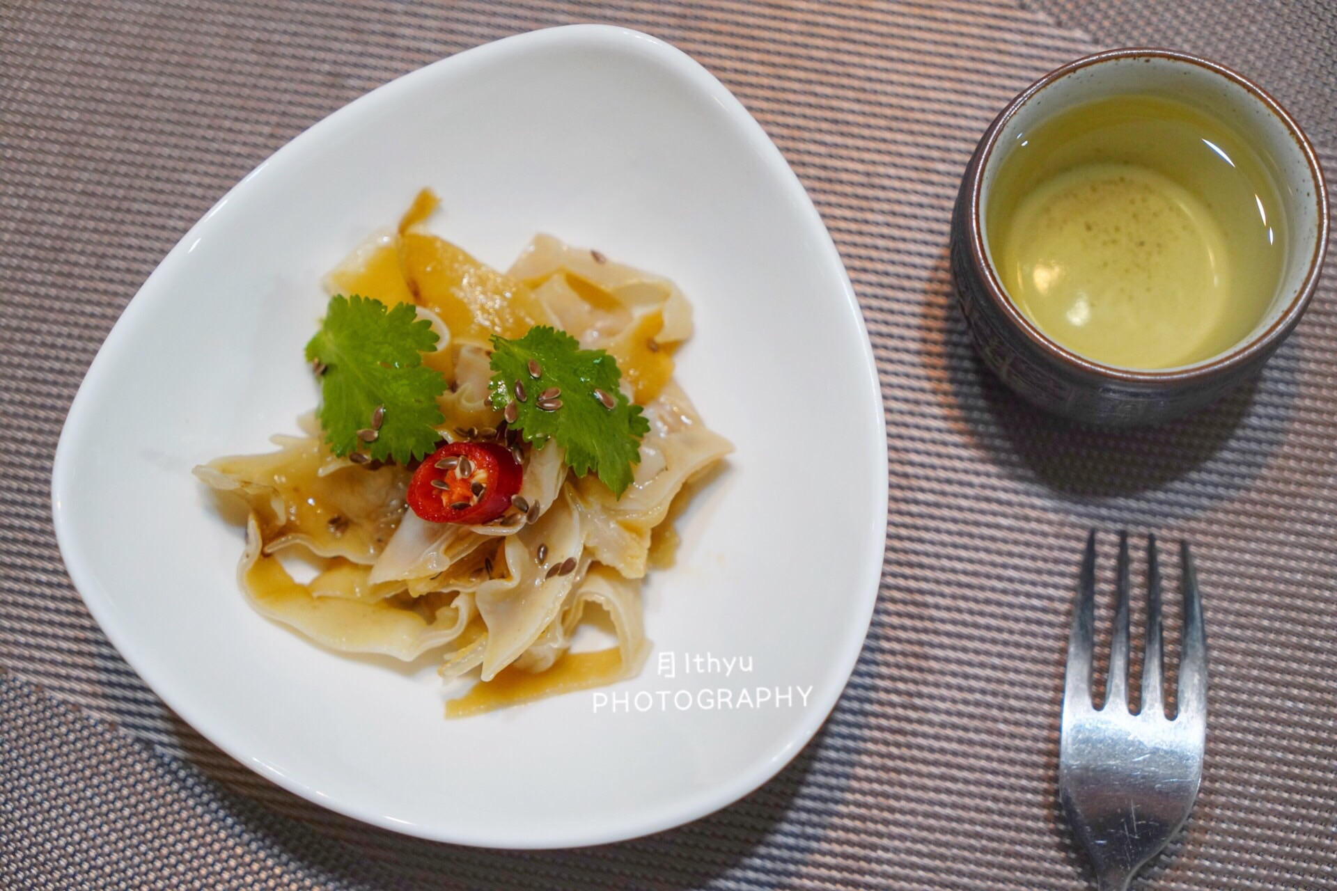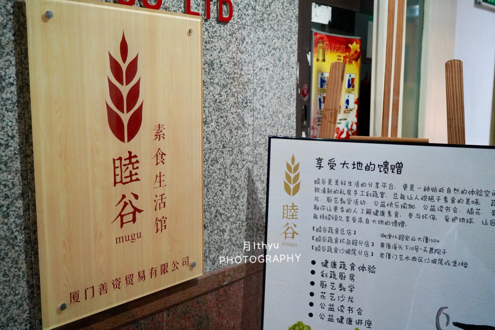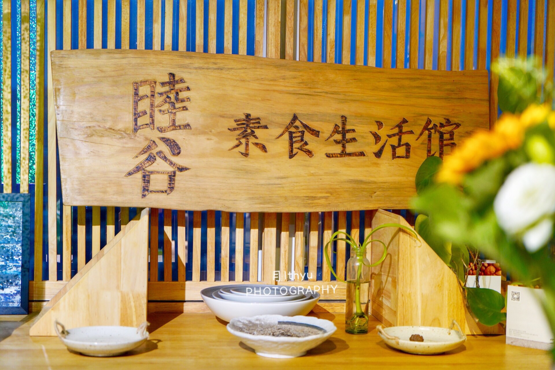 睦谷素食生活馆不是朋友带来,真让人想像不到在办公楼的顶层有间素食馆,它隐藏在滨北宏业大厦的15楼。 果蔬沙拉,各种水果汇集一盘,特色在于睦谷特制纯素沙拉酱(无蛋奶),清爽开胃。 亚麻籽凉拌竹耳,竹耳的切面真的和猪耳好接近,和木耳相似,但口感更清脆,而且加入了亚麻籽提味,非常营养。 花椒吉筋,因加了花椒辣椒,麻香中带着脆爽,口感浓郁。 松茸马蹄养生汤,野生松茸、牛肝菌、青莲花、奶浆菌……等多种菌菇汇集成的一道清汤,再加入马蹄提升了口感,清爽而鲜美。 九层塔黄金藜麦豆腐,藜麦的口感一直非常喜欢,加入了豆腐的香嫩,再加入酱汁中的鲜味,味道十分丰富多彩。 甜菜燕麦腰果焗贝贝南瓜,鲜艳的色泽一看就非常诱人,用了甜菜根的原红色加入了燕麦米、生腰果、茴香末、橄榄油一起熬成酸甜可口的浓酱浇在南瓜上,每一口甜中带着香、香中带着糯。 三杯猴头菇,带着肉的嚼劲,搭配着花生芽,不腻还着着一丝清爽。 胚芽玉米牛肝菌烩饭,睦谷的招牌饭噢。野生牛肝菌熬成酱汁与杂粮一起炒,颗粒分明炒饭,每一口都带着牛肝菌的香味。 洋蓟披萨,想象不到,青莲花也可以做成披萨呢,把嫩芽放在披萨上,带着芝士的香味和花的淡淡香味,每一口都非常独特,好吃的真是停不下来。 思慕雪,用苹果、甜菜根、香蕉和生腰果一起打成果昔,甜味浓郁,酸美清爽中带着脆。