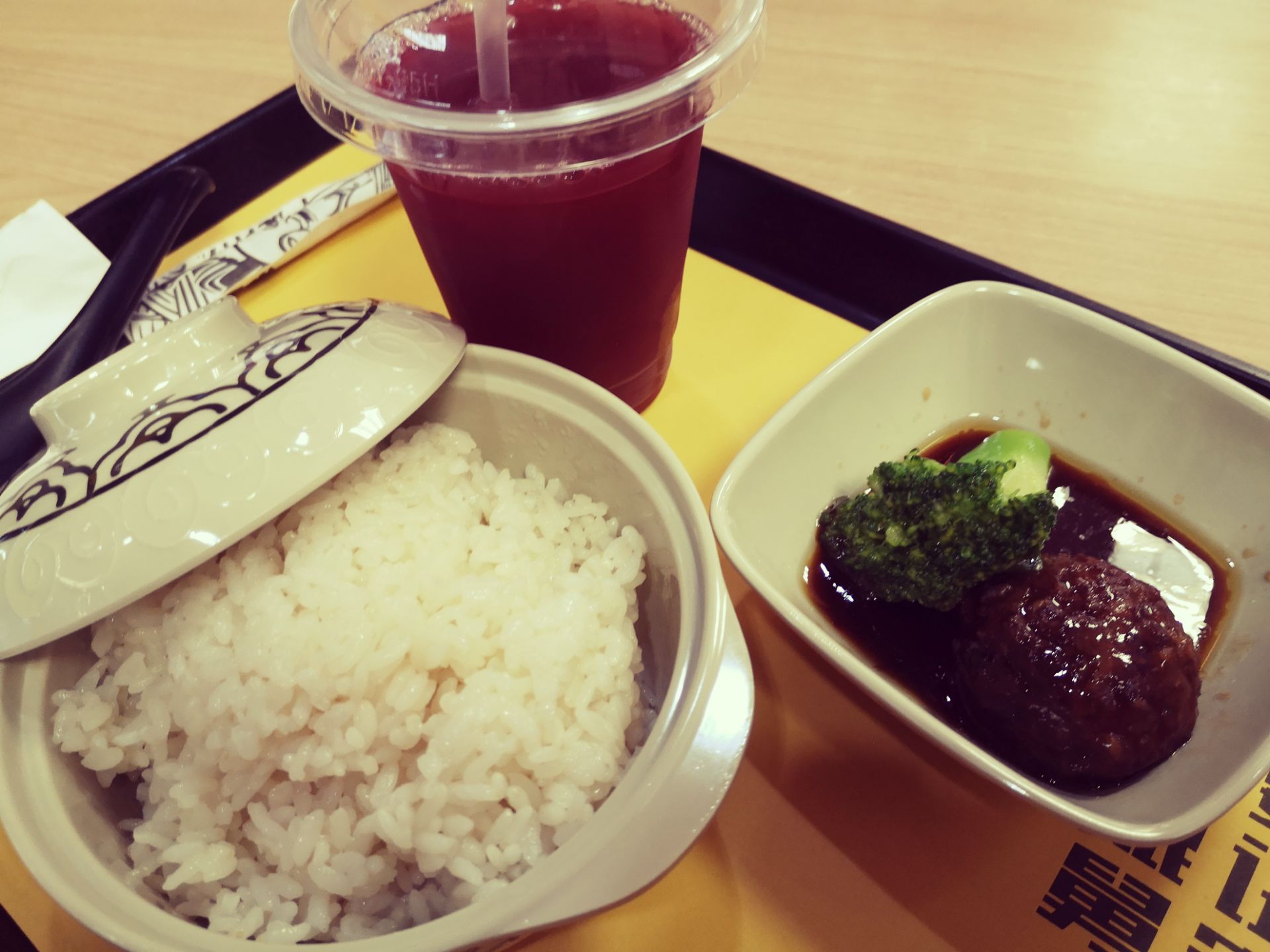 [环境]又来新华路老娘舅打卡。 某网站上团购了6元杨梅汁+狮子头套餐。 一人食的晚餐不多不少,老娘舅自然最适宜。 环境干净整洁,服务态度也好,连锁店的食品安全也是最吸引我的优势之一。 |杨梅汁^冰镇杨梅汁,酸酸甜甜,有几份杨梅滋味。 |狮子头^一颗狮子头搭配西兰花,狮子头松软,西兰花细腻,酱汁浓郁入味,相当下饭。 |米饭^单点3元,蒸汽腾腾,香香糯糯,份量十足,搭配狮子头的酱汁,消灭了大半碗。 老娘舅,清淡少油腻,健康又营养。十余年的品牌效应无形中已然是另一种生产力。